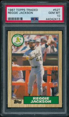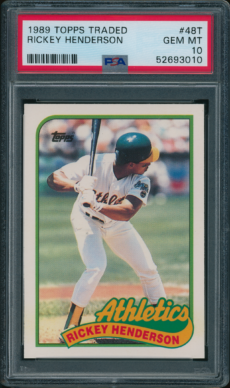 Athletics , Baseball 1987 Topps Traded #52T Reggie Jackson PSA 10 GEM MINT *RARE* Athletics , Baseball 1989 Topps Traded #48T Rickey Henderson PSA 10 GEM MINT Athletics , Baseball 2017 Stadium Club #227 Jose Canseco PSA 10 GEM MINT RARE POP 1 Athletics , Baseball 2020 Topps Living #281 Rollie Fingers PSA 10 GEM MINT Athletics , Baseball 2022 Topps Pristine #PA-RHE Rickey Henderson AUTO GOLD-REF PSA 10 GEM MINT←12