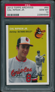 Baseball , Orioles 1989 Topps #250 Cal Ripken Jr. PSA 10 GEM MINT Baseball , Orioles 1989 Topps #625 Eddie Murray PSA 10 GEM MINT Baseball , Orioles 1991 O-PEE-CHEE #150 Cal Ripken Jr. PSA 9 MINT Baseball , Braves 2012 Topps Archives #44 Cal Ripken Jr. PSA 10 GEM MINT Baseball , Orioles 2018 Topps Heritage #TM Trey Mancini Real One Autographs PSA 10 GEM-MINT←12