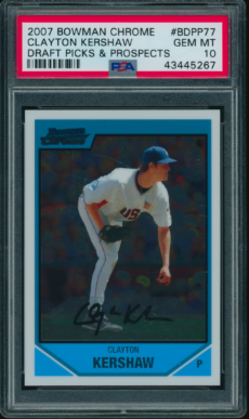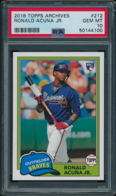 Baseball , Mariners 1997 Topps #300 Ken Griffey Jr. PSA 10 GEM MINT Baseball , Reds 2000 Topps #400 Ken Griffey Jr. PSA 10 GEM MINT Baseball , Reds 2000 Topps Gallery Heritage #TGH14 Ken Griffey Jr. Reds PSA 9++ Baseball , Mariners 2000 Topps Gallery Heritage #TGH15 Alex Rodriguez PSA 10 GEM MINT Baseball , Braves 2002 Topps #410 Chipper Jones PSA 10 GEM MINT Baseball , Reds 2002 Topps #550 Ken Griffey Jr. PSA 10 GEM MINT Baseball , Red Sox 2003 Topps #26 David Ortiz PSA 10 GEM MINT Baseball , Reds 2003 Topps #390 Ken Griffey Jr. PSA 10 GEM MINT Baseball , Red Sox 2003 Topps #450 Pedro Martinez Topps Red Logo PSA 10 GEM MINT Baseball , Reds 2004 Topps #510 Ken Griffey JR. PSA 10 GEM MINT Baseball , Reds 2005 Topps #440 Ken Griffey Jr. PSA 10 GEM MINT Baseball , Dodgers 2007 Bowman Chrome #BDPP77 Clayton Kershaw RC Rookie Auto PSA 10 GEM MINT Baseball , Yankees 2009 Topps #7 Mickey Mantle PSA 10 GEM MINT Baseball , Reds 2012 Leaf #AU-4 Pete Rose The Living Legend Auto PSA 10 GEM MINT Baseball , Braves 2012 Topps Archives #44 Cal Ripken Jr. PSA 10 GEM MINT Baseball , Dodgers 2012 Topps Heritage Flashbacks #BF-SK Sandy Koufax PSA 10 GEM MINT All-Star Cups , Angels 2013 Topps Heritage #430 Mike Trout PSA 10 GEM MT Baseball , Giants 2013 Topps Update #US73 Willie Mays Sandy Koufax PSA 10 GEM MINT Baseball , Giants 2015 Topps Archives #300 Willie Mays PSA 10 GEM MINT Baseball , Braves 2017 Bowman Chrome #BCP127 Ronald Acuna 1st Bowman PSA 10 GEM MINT Athletics , Baseball 2017 Stadium Club #227 Jose Canseco PSA 10 GEM MINT RARE POP 1 Baseball , Yankees 2017 Topps Archives #134 Whitey Ford PSA 10 GEM MINT – POP 1 Baseball , Dodgers 2017 Topps Archives #59B-17 Sandy Koufax 1959 Bazooka PSA 10 GEM MINT Baseball , Rangers 2017 Topps Archives #NR Nolan Ryan 1959 Bazooka Auto PSA 10 GEM MINT Baseball , Braves 2018 Bowman Chrome #BCRARA Ronald Acuna Autograph RC PSA 10 GEM MINT Baseball , Mets 2018 Topps Archives #118 Jacob DeGrom PSA 10 GEM MINT Baseball , Yankees 2018 Topps Archives #200 Derek Jeter Navy Blue Shirt PSA 10 GEM MT Baseball , Braves 2018 Topps Archives #212 Ronald Acuna Jr. RC PSA 10 GEM MINT All-Star Cups , Baseball 2018 Topps Heritage #25 Aaron Judge PSA 10 Angels , Baseball 2018 Topps Heritage #600 Shohei Ohtani RC PSA 10 GEM MINT←123…1516171819→