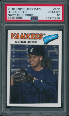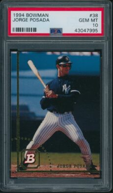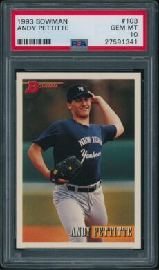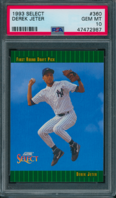 Baseball , Rookie Cards 1993 Bowman 103 Andy Pettitte RC PSA 10 GEM MINT Baseball , Rookie Cards 1993 Select #360 Derek Jeter Rookie PSA 10 GEM MINT Baseball , Yankees 1994 Bowman #38 Jorge Posada RC PSA 10 GEM MINT All-Star Cups , Baseball 1997 Topps #13 Derek Jeter PSA Rookie Cup 10 GEM MINT Baseball , Yankees 2009 Topps #7 Mickey Mantle PSA 10 GEM MINT Baseball , Yankees 2017 Topps Archives #134 Whitey Ford PSA 10 GEM MINT – POP 1 Baseball , Yankees 2018 Topps Archives #200 Derek Jeter Navy Blue Shirt PSA 10 GEM MT All-Star Cups , Baseball 2018 Topps Heritage #25 Aaron Judge PSA 10 Baseball , Yankees 2018 Topps Heritage #DJ Derek Jeter Real One Autographs PSA 10 GEM MINT All-Star Cups , Baseball 2019 Topps Heritage #413 Gleyber Torres Purple Refractor PSA 10 GEM MT Baseball , Cards 2019 Topps Living #259 Thurman Munson Yankees PSA 10 GEM MT←123
