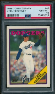 Baseball , Giants 1988 Topps #450 Barry Bonds PSA 10 GEM MINT Baseball , Dodgers 1988 Topps #780 Fernando Valenzuela PSA 10 GEM MINT Baseball , Cards 1988 Topps Big #11 Dwight Gooden PSA 10 GEM MT Baseball , Dodgers 1988 Topps Tiffany #40 Orel Hershiser PSA 10 GEM MINT Baseball , Dodgers 1988 Topps Tiffany #40 Orel Hershiser PSA 10 GEM MINT Baseball , Mets 1988 Topps Tiffany #480 Dwight Gooden PSA 10 GEM MINT Baseball , Red Sox 1988 Topps Tiffany #70 Roger Clemens PSA 10 GEM MINT Baseball , Blue Jays 1988 Topps Traded #128T David Wells RC Rookie PSA 10 GEM MINT Baseball , Padres 1988 Topps Traded #4T Roberto Alomar RC Rookie PSA 10 GEM MINT Baseball , Cards 1989 Bowman #211 Tino Martinez RC Yankees PSA 10 GEM MT Baseball , Mariners 1989 Bowman #220 Ken Griffey Jr. RC PSA 10 GEM MINT Baseball , Orioles 1989 Fleer #616 Bill Ripken FF Error PSA 10 GEM MINT Baseball , Phillies 1989 Topps #100 Mike Schmidt PSA 10 GEM MINT Baseball , Royals 1989 Topps #200 George Brett PSA 10 GEM MINT Baseball , Orioles 1989 Topps #250 Cal Ripken Jr. PSA 10 GEM MINT Baseball , Mets 1989 Topps #300 Darryl Strawberry PSA 10 GEM MINT Baseball , Cubs 1989 Topps #360 Ryne Sandberg PSA 10 GEM MINT Baseball , Yankees 1989 Topps #380 Rickey Henderson PSA 10 GEM MINT Astros , Baseball 1989 Topps #49 Craig Biggio Astros PSA 10 GEM MINT Baseball , Reds 1989 Topps #505 Pete Rose PSA 10 GEM MINT Astros , Baseball 1989 Topps #530 Nolan Ryan PSA 10 GEM MINT Baseball , Dodgers 1989 Topps #550 Orel Hershiser PSA 10 GEM MINT Baseball , Padres 1989 Topps #570 Tony Gwynn PSA 10 GEM MINT Baseball , Red Sox 1989 Topps #600 Wade Boggs PSA 10 GEM MINT Baseball , Brewers 1989 Topps #615 Robin Yount Brewers PSA 10 GEM MT Baseball , Orioles 1989 Topps #625 Eddie Murray PSA 10 GEM MINT Baseball , Expos 1989 Topps #647 Randy Johnson RC Rookie PSA 10 GEM MINT Baseball , Mets 1989 Topps LJN #63 Dwight Gooden Baseball Talk PSA 9 MINT Baseball , Blue Jays 1989 Topps Tiffany #75 Tom Henke PSA 9 MINT Baseball , Rangers 1989 Topps Traded #106T Nolan Ryan PSA 10 GEM MINT←123…131415161718192021→