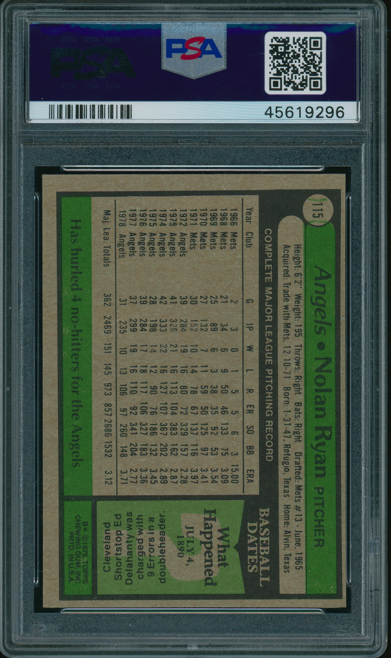 Home / Shop / Cards / Baseball / Angels / 1979 Topps #115 Nolan Ryan PSA 9 MINT1979 Topps #115 Nolan Ryan PSA 9 MINTRelated products Baseball , Cards 1973 Topps #627 Luis Alvarado White Sox PSA 8++ Centered All-Star Cups , Angels 2013 Topps Heritage #430 Mike Trout PSA 10 GEM MT Baseball , Cards 1958 Topps #370 Yogi Berra Yankees PSA 8++ Centered Baseball , Cards 1977 Topps #10 Reggie Jackson Yankees PSA 9 MINT
