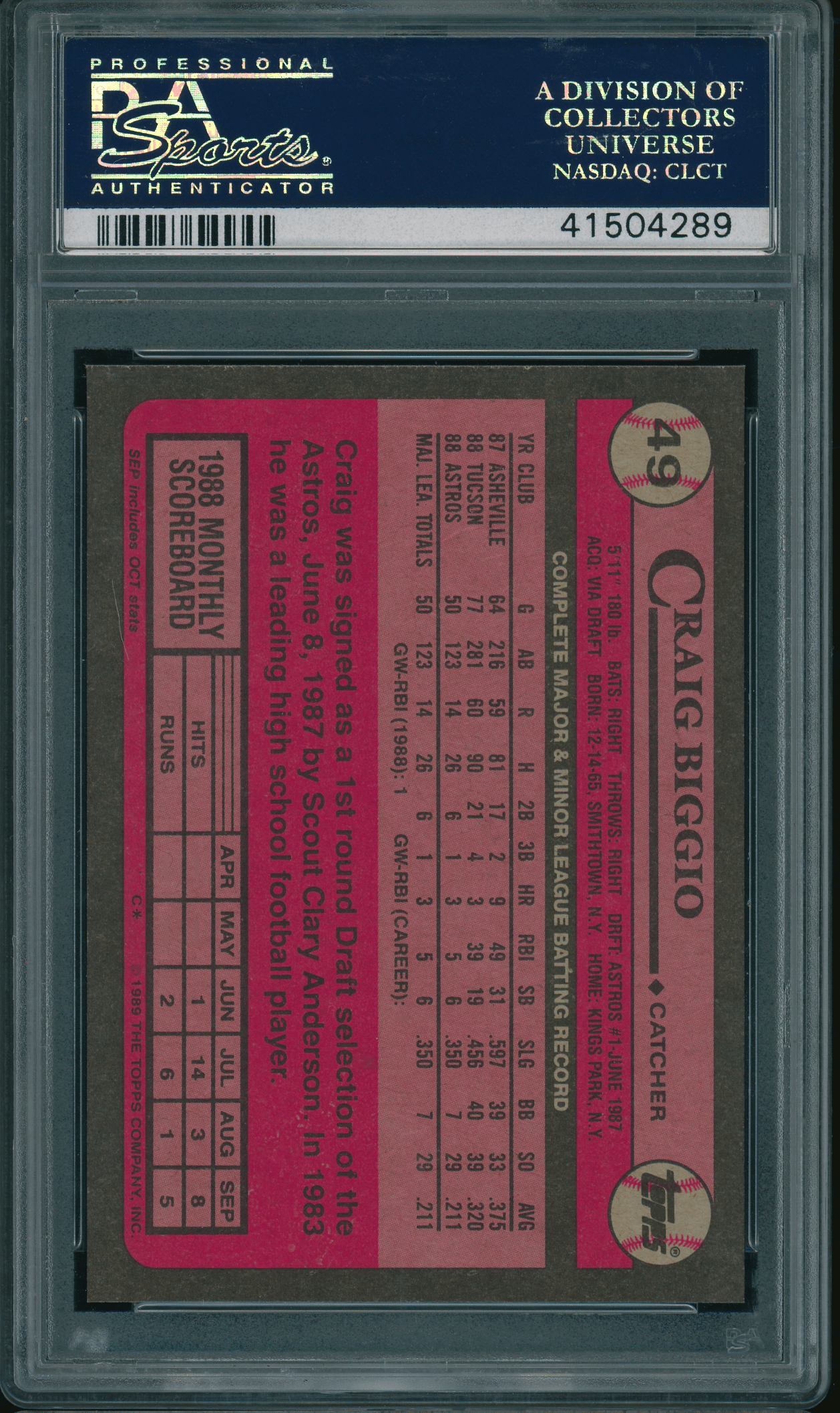 Home / Shop / Cards / Baseball / Astros / 1989 Topps #49 Craig Biggio Astros PSA 10 GEM MINT1989 Topps #49 Craig Biggio Astros PSA 10 GEM MINTRelated products Baseball , Cards 1970 Kelloggs #7 Tom Seaver Mets PSA 10 GEM MT Baseball , Cards 1977 Topps #640 Carlton Fisk Red Sox PSA 9 MINT Baseball , Cards 1989 Bowman #211 Tino Martinez RC Yankees PSA 10 GEM MT Baseball , Cards 1983 Topps #163 Cal Ripken Jr. Orioles PSA 10 GEM MT
