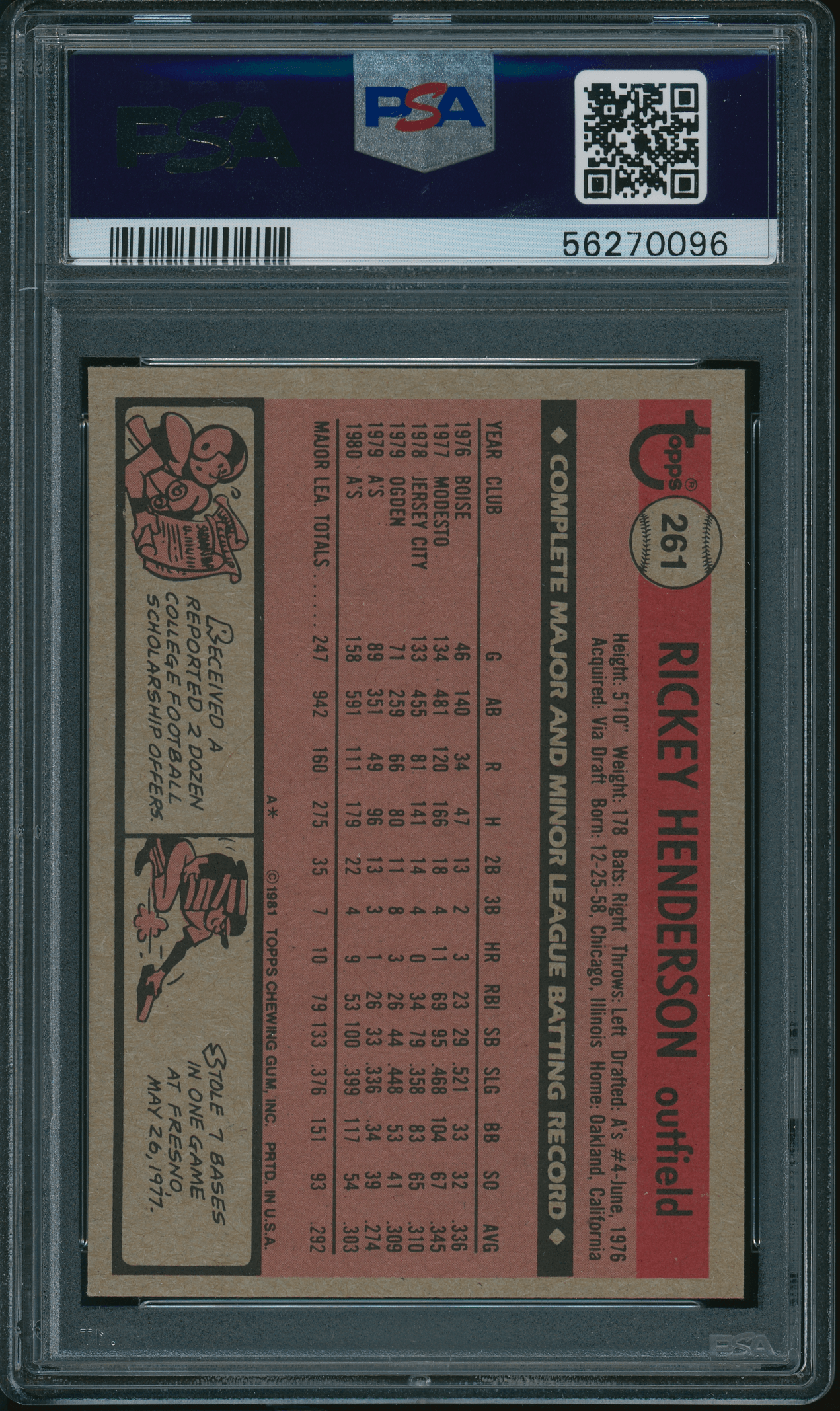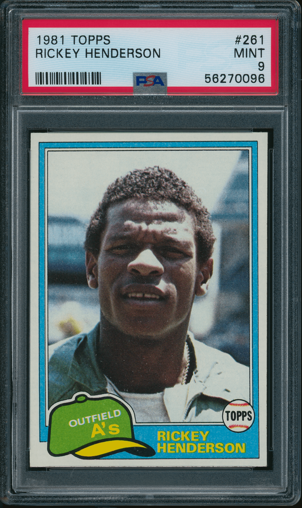Home / Shop / Cards / Baseball / Athletics / 1981 Topps #261 Rickey Henderson PSA 9 MINT1981 Topps #261 Rickey Henderson PSA 9 MINTRelated products All-Star Cups , Baseball 2019 Topps Heritage #413 Gleyber Torres Purple Refractor PSA 10 GEM MT Baseball , Cards 1983 Topps #580 Tom Seaver Reds PSA 10 GEM MT All-Star Cups , Baseball 2018 Topps Heritage #25 Aaron Judge PSA 10 Baseball , Cards 1958 Topps #370 Yogi Berra Yankees PSA 8++ Centered