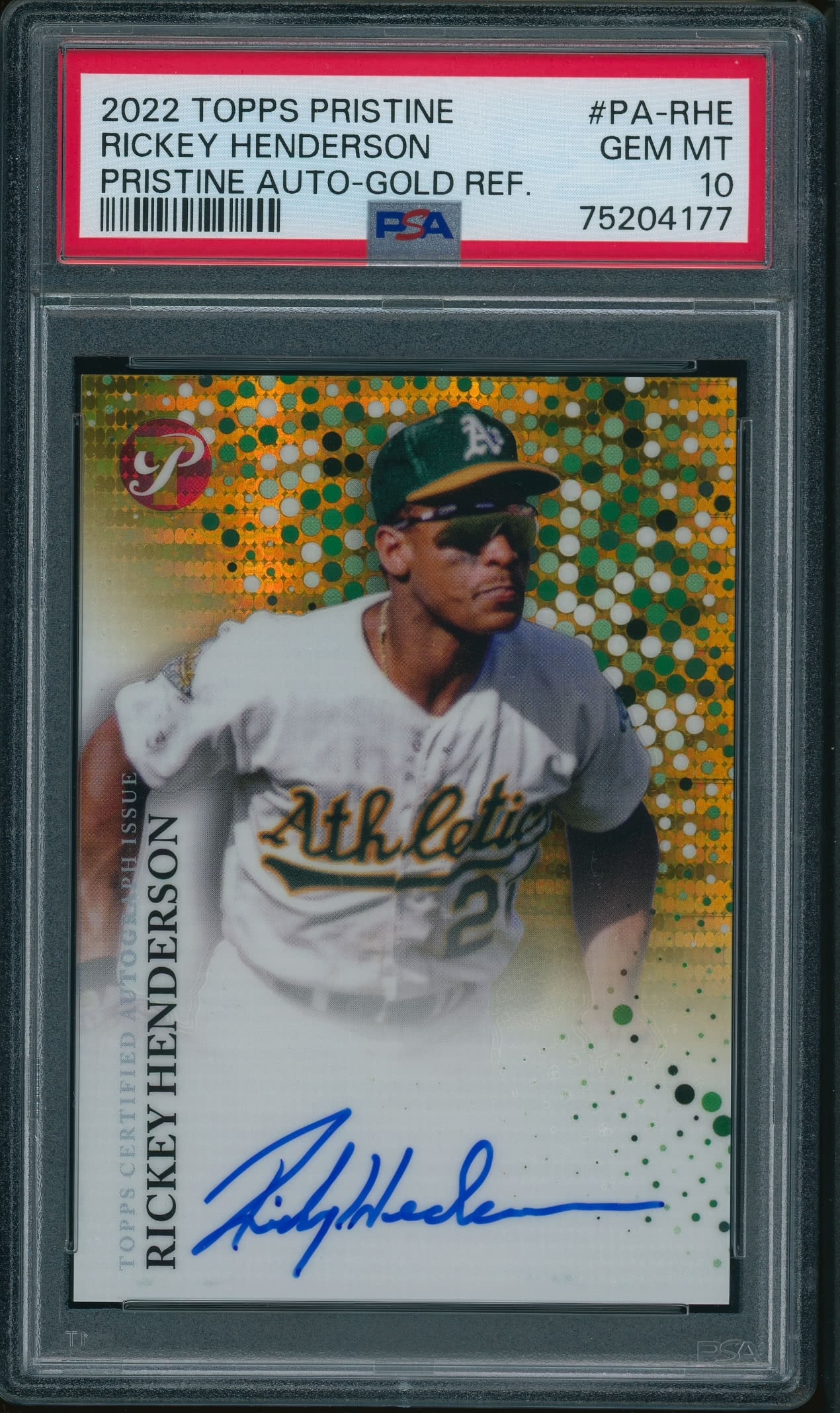 Home / Shop / Cards / Baseball / Athletics / 2022 Topps Pristine #PA-RHE Rickey Henderson AUTO GOLD-REF PSA 10 GEM MINT2022 Topps Pristine #PA-RHE Rickey Henderson AUTO GOLD-REF PSA 10 GEM MINTRelated products Baseball , Cards 1988 Topps Big #11 Dwight Gooden PSA 10 GEM MT Baseball , Cards 1961 Topps #2 Roger Maris Yankees PSA 8++ Centered All-Star Cups , Baseball 2018 Topps Heritage #25 Aaron Judge PSA 10 Baseball , Cards 1973 Topps #627 Luis Alvarado White Sox PSA 8++ Centered