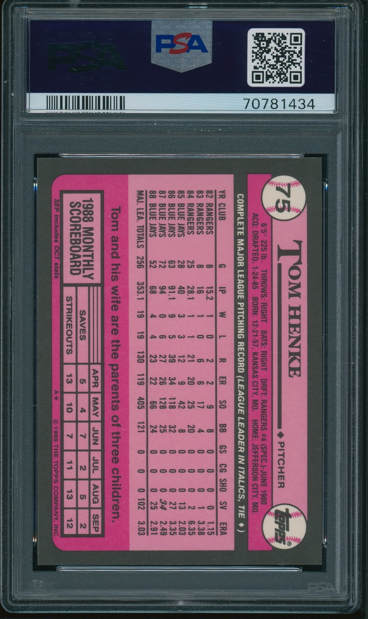 Home / Shop / Cards / Baseball / Blue Jays / 1989 Topps Tiffany #75 Tom Henke PSA 9 MINT1989 Topps Tiffany #75 Tom Henke PSA 9 MINTRelated products Baseball , Cards 1984 Topps Traded #42T Dwight Gooden RC Rookie PSA 10 GEM MT Baseball , Cards 1988 Topps Big #11 Dwight Gooden PSA 10 GEM MT Baseball , Cards 1961 Topps #2 Roger Maris Yankees PSA 8++ Centered Baseball , Cards 1983 Topps #163 Cal Ripken Jr. Orioles PSA 10 GEM MT