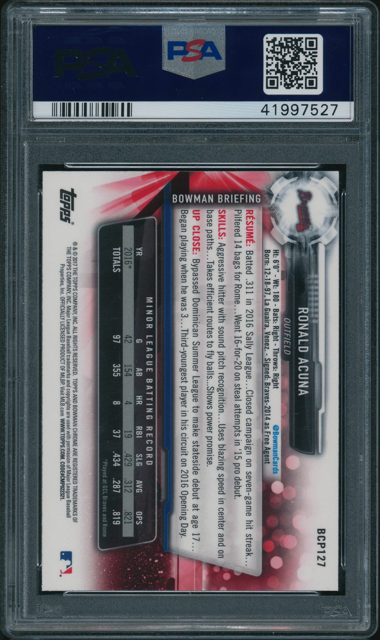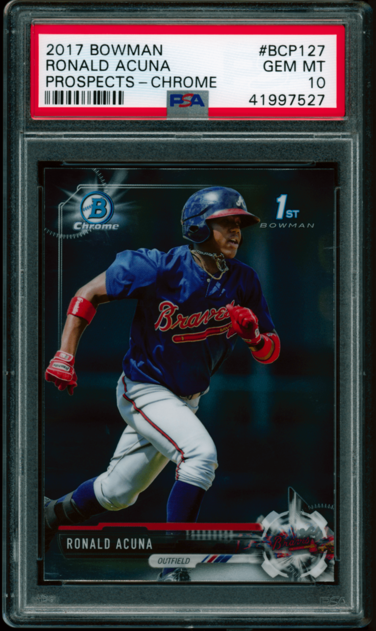 Home / Shop / Cards / Baseball / Braves / 2017 Bowman Chrome #BCP127 Ronald Acuna 1st Bowman PSA 10 GEM MINT2017 Bowman Chrome #BCP127 Ronald Acuna 1st Bowman PSA 10 GEM MINTRelated products Baseball , Cards 2019 Topps Living #259 Thurman Munson Yankees PSA 10 GEM MT All-Star Cups , Baseball 1969 Topps #95 Johnny Bench All-Star Rookie Reds PSA 8++ Centered Baseball , Cards 1989 Bowman #211 Tino Martinez RC Yankees PSA 10 GEM MT Baseball , Cards 1961 Topps #388 Roberto Clemente Pirates PSA 8++ Centered1961 Topps #388 Roberto Clemente Pirates PSA 8++ Centered