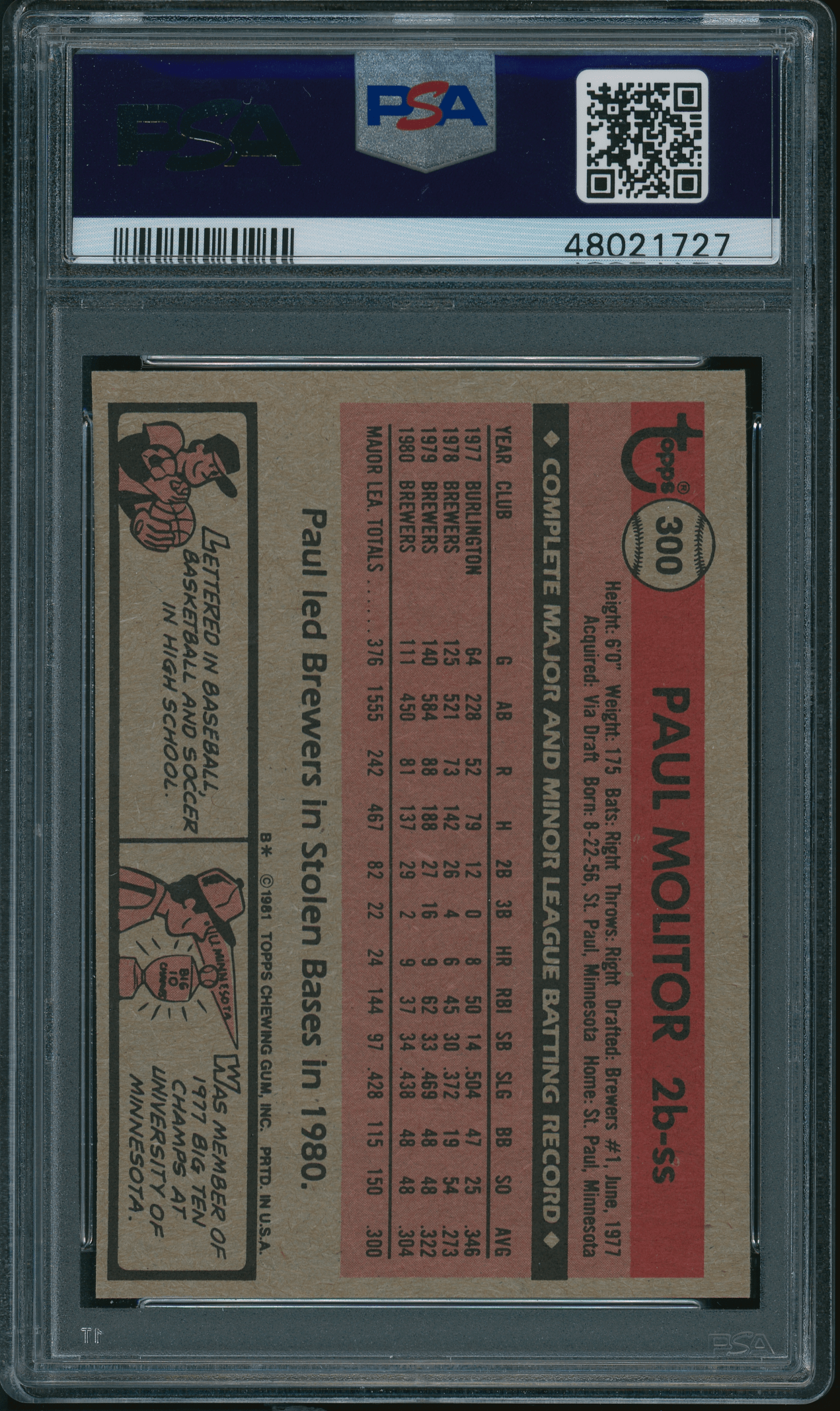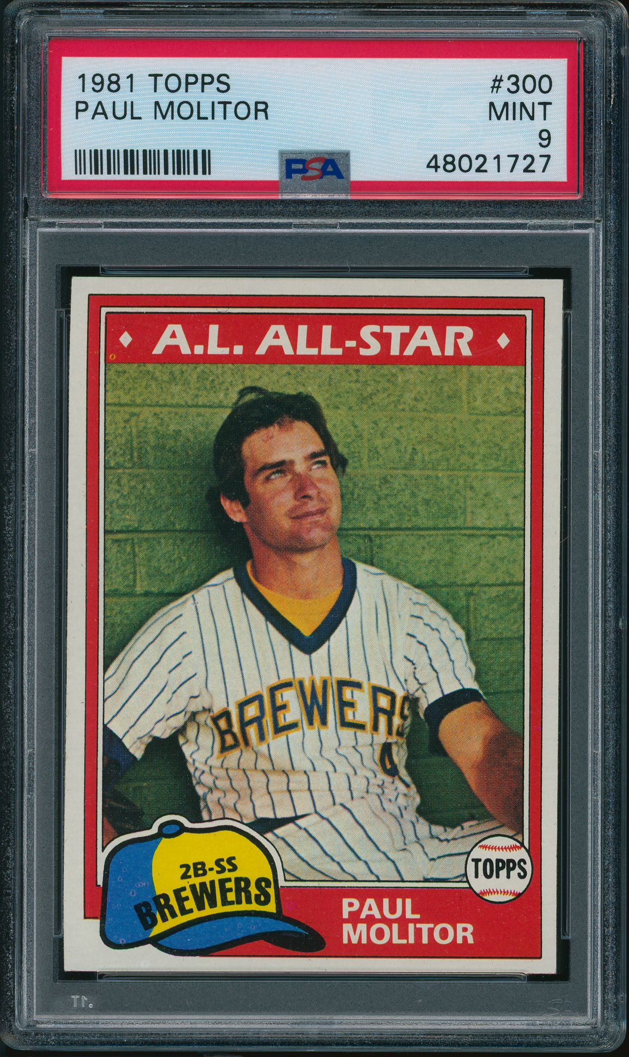 Home / Shop / Cards / Baseball / Brewers / 1981 Topps #300 Paul Molitor PSA 9 MINT1981 Topps #300 Paul Molitor PSA 9 MINTRelated products Baseball , Cards 1980 Topps #600 Reggie Jackson Yankees PSA 9 MINT Baseball , Cards 1989 Bowman #211 Tino Martinez RC Yankees PSA 10 GEM MT Baseball , Cards 1983 Topps #580 Tom Seaver Reds PSA 10 GEM MT All-Star Cups , Baseball 1969 Topps #95 Johnny Bench All-Star Rookie Reds PSA 8++ Centered