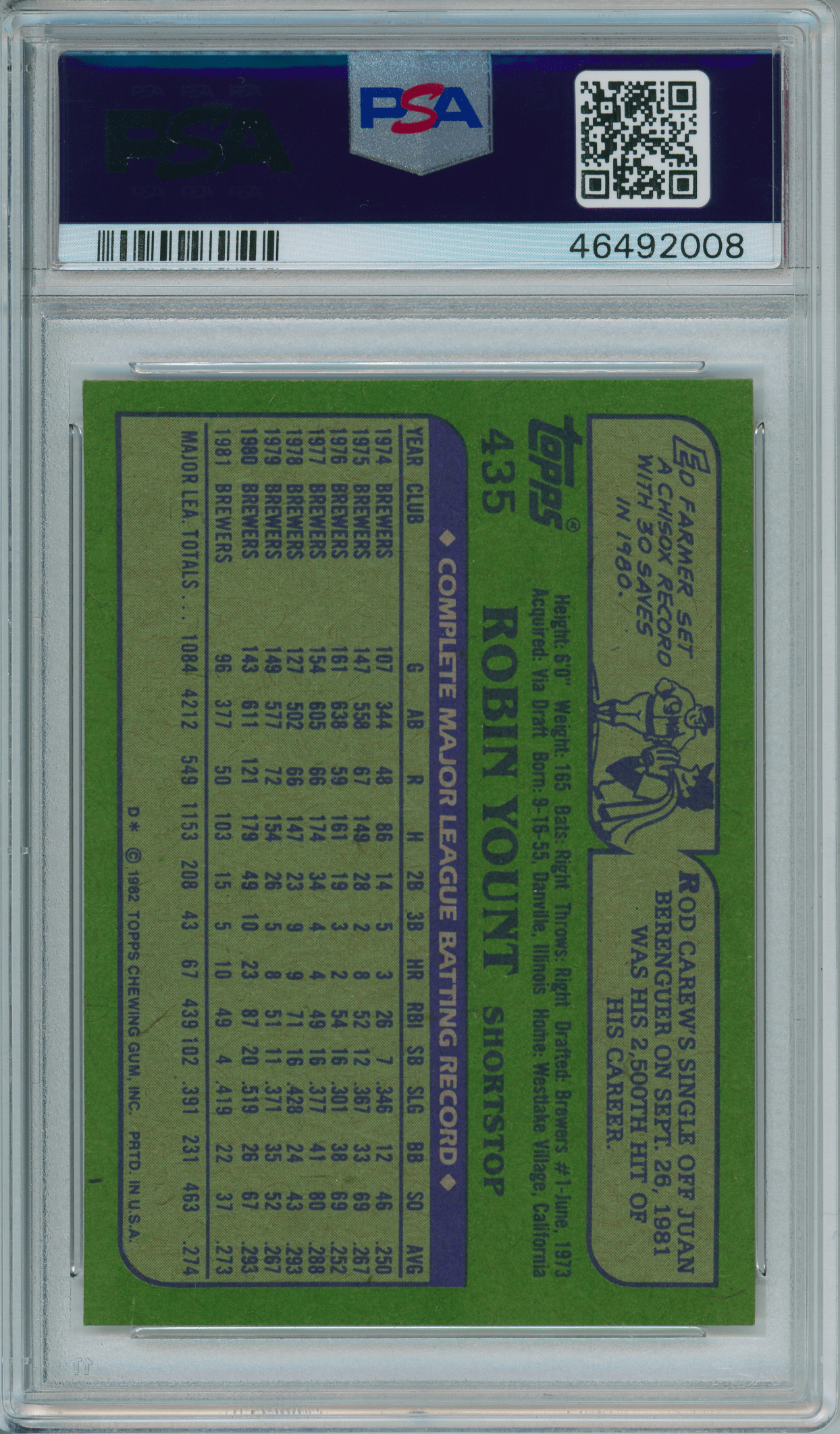 Home / Shop / Cards / Baseball / Brewers / 1982 Topps #435 Robin Yount PSA 9++1982 Topps #435 Robin Yount PSA 9++Related products Baseball , Cards 1993 Bowman #511 Derek Jeter RC Yankees PSA 10 Gem MT Baseball , Cards 1980 Topps #600 Reggie Jackson Yankees PSA 9 MINT Baseball , Cards 1958 Topps #370 Yogi Berra Yankees PSA 8++ Centered All-Star Cups , Angels 2013 Topps Heritage #430 Mike Trout PSA 10 GEM MT