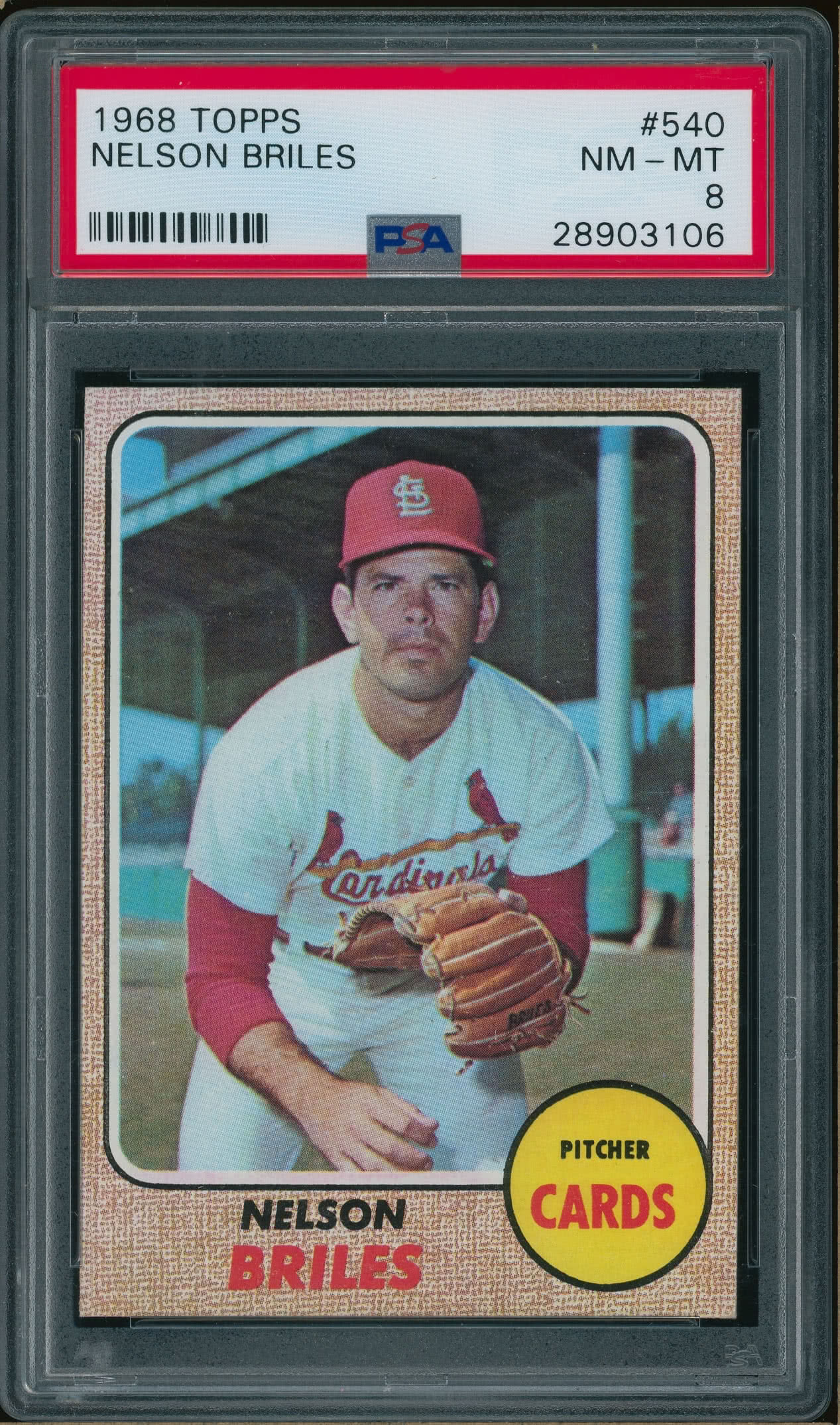 Home / Shop / Cards / Baseball / Cardinals / 1968 Topps #540 Nelson Briles PSA 8 NM-MT++1968 Topps #540 Nelson Briles PSA 8 NM-MT++Related products All-Star Cups , Baseball 2018 Topps Heritage #25 Aaron Judge PSA 10 Baseball , Cards 2019 Topps Living #259 Thurman Munson Yankees PSA 10 GEM MT Baseball , Cards 1986 Topps Tiffany #159 Orel Hershiser Dodgers PSA 9 MINT Baseball , Cards 1973 Topps #627 Luis Alvarado White Sox PSA 8++ Centered