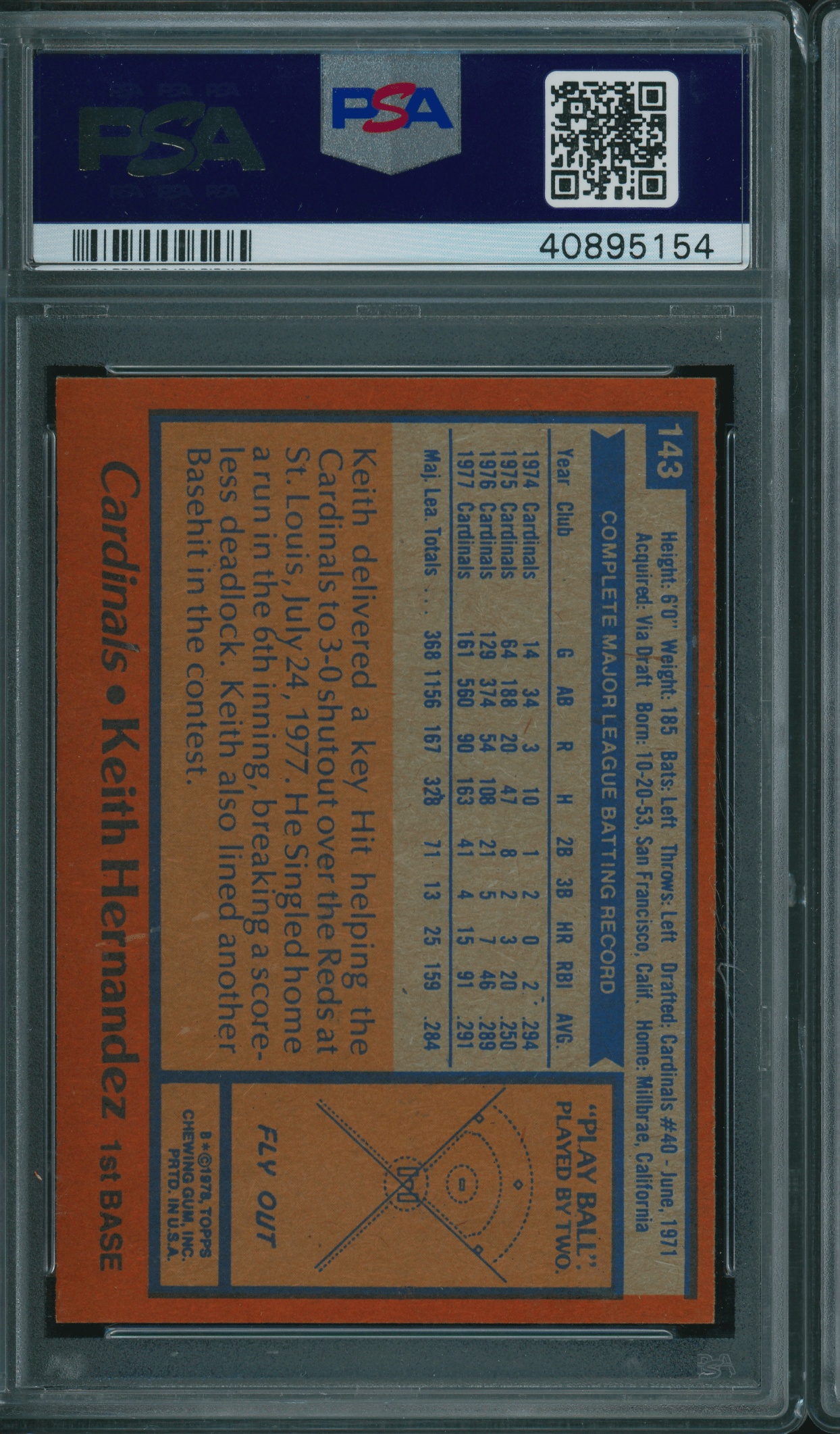 1978 Topps #143 Keith Hernandez PSA 9 MINT