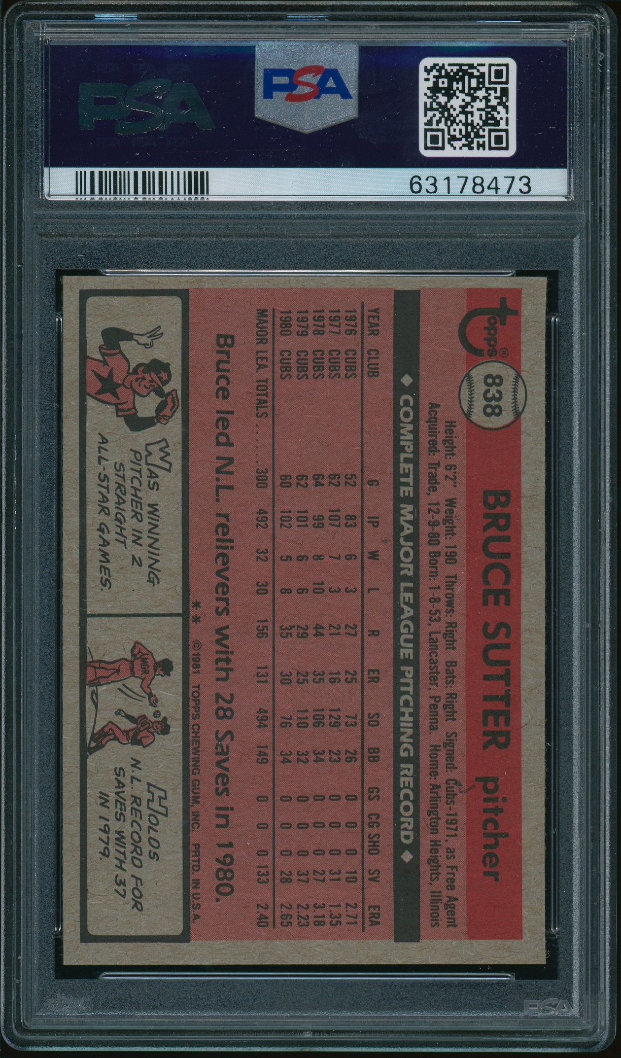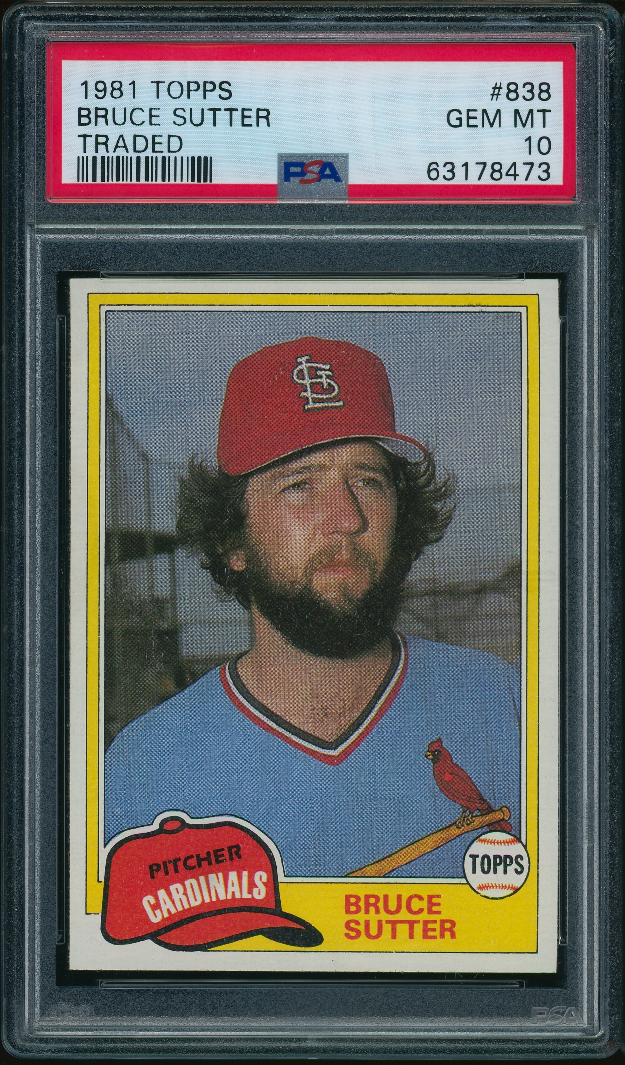 Home / Shop / Cards / Baseball / Cardinals / 1981 Topps Traded #838 Bruce Sutter PSA 10 GEM MINT1981 Topps Traded #838 Bruce Sutter PSA 10 GEM MINTRelated products Baseball , Cards 1970 Kelloggs #7 Tom Seaver Mets PSA 10 GEM MT Baseball , Cards 1961 Topps #2 Roger Maris Yankees PSA 8++ Centered Baseball , Cards 1983 Topps #580 Tom Seaver Reds PSA 10 GEM MT Baseball , Cards 1983 Topps #163 Cal Ripken Jr. Orioles PSA 10 GEM MT