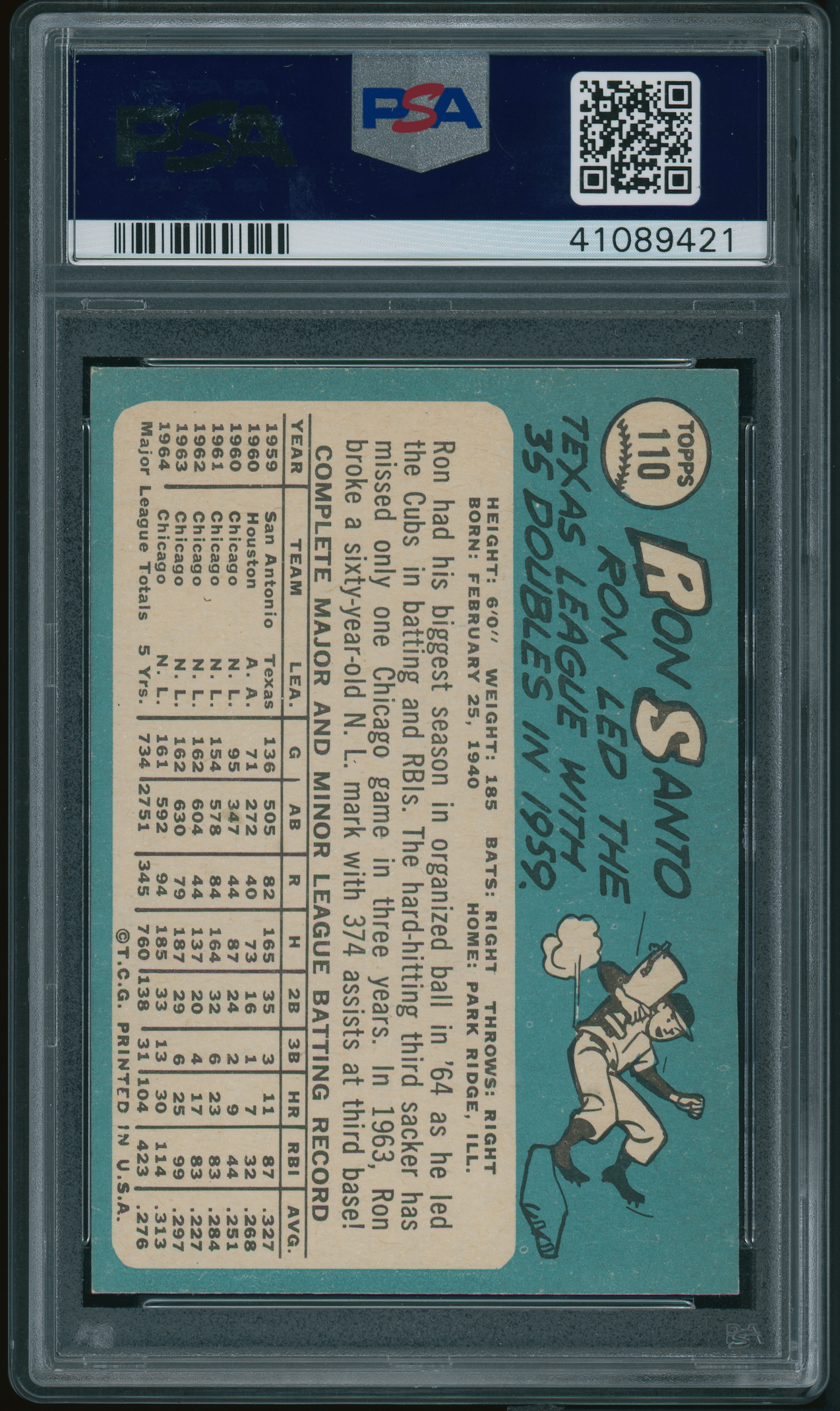 Home / Shop / Cards / Baseball / Cubs / 1965 Topps #110 Ron Santo PSA 8 NM-MT1965 Topps #110 Ron Santo PSA 8 NM-MTRelated products Baseball , Cards 1983 Topps #163 Cal Ripken Jr. Orioles PSA 10 GEM MT All-Star Cups , Baseball 2018 Topps Heritage #25 Aaron Judge PSA 10 Baseball , Cards 1970 Kelloggs #7 Tom Seaver Mets PSA 10 GEM MT Baseball , Cards 1977 Topps #640 Carlton Fisk Red Sox PSA 9 MINT
