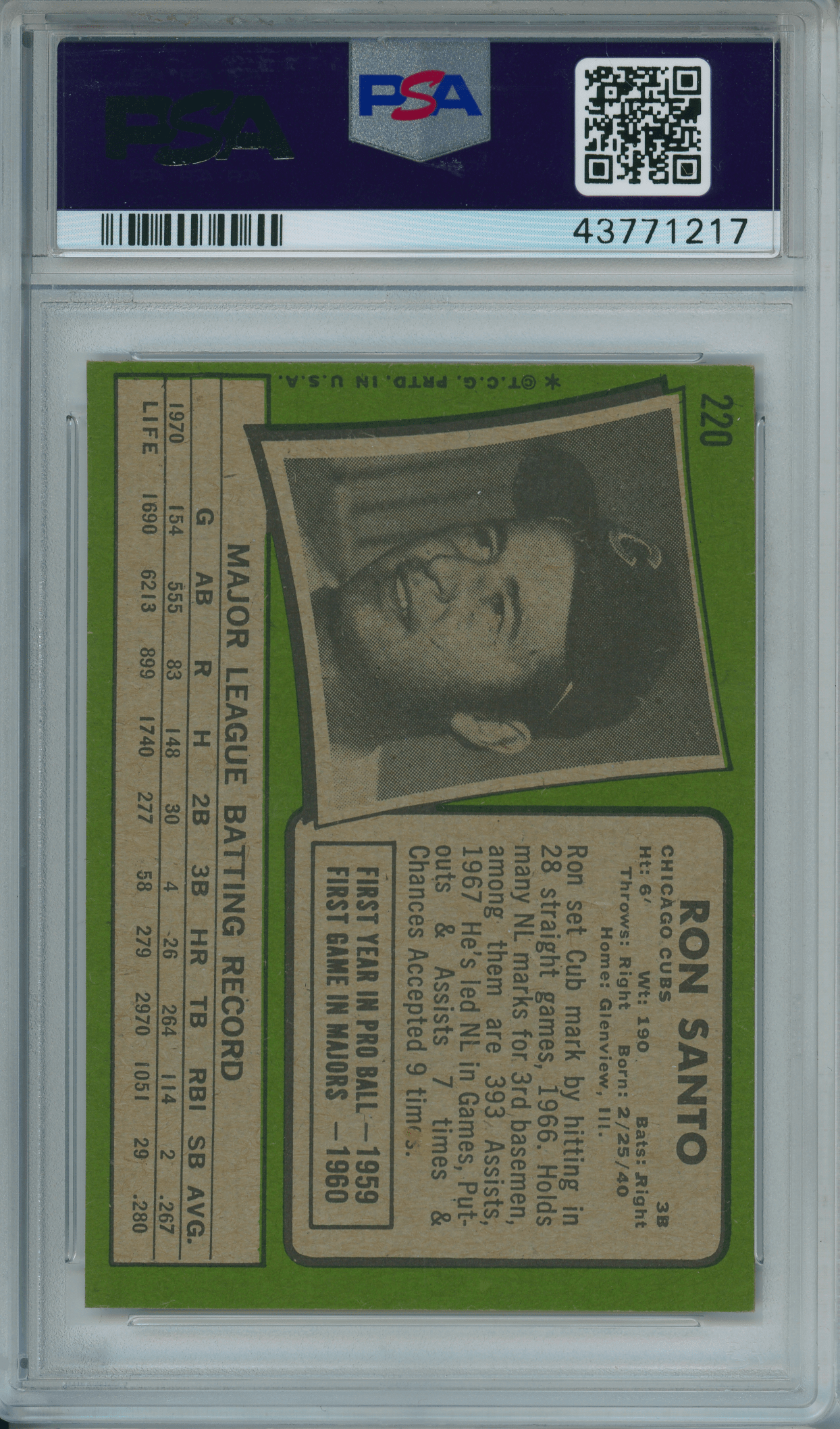 1971 Topps #220 Ron Santo PSA 7++ Centered
