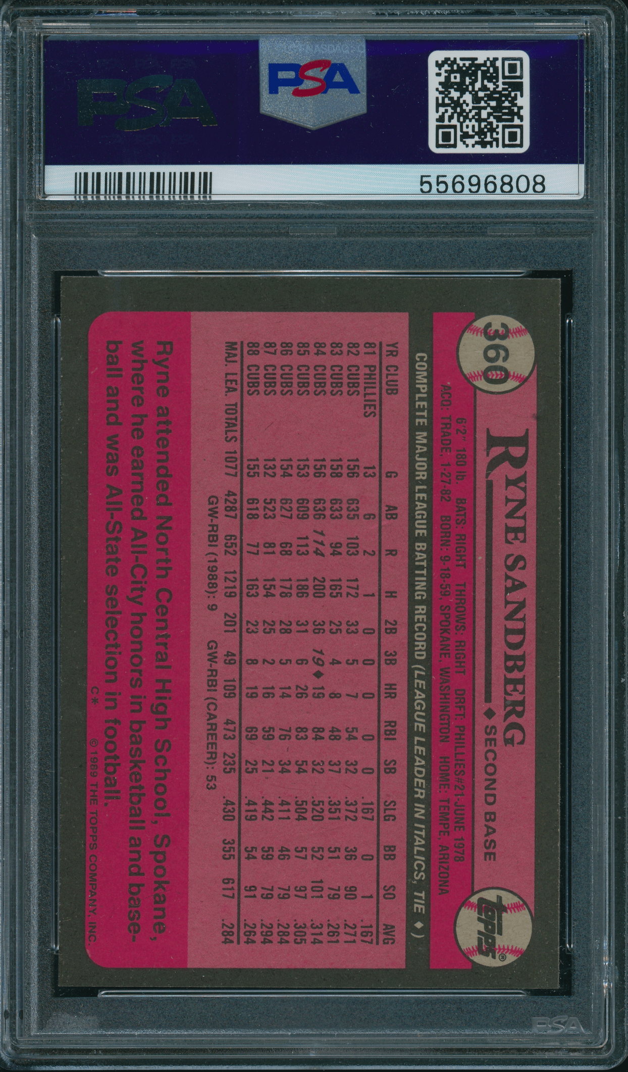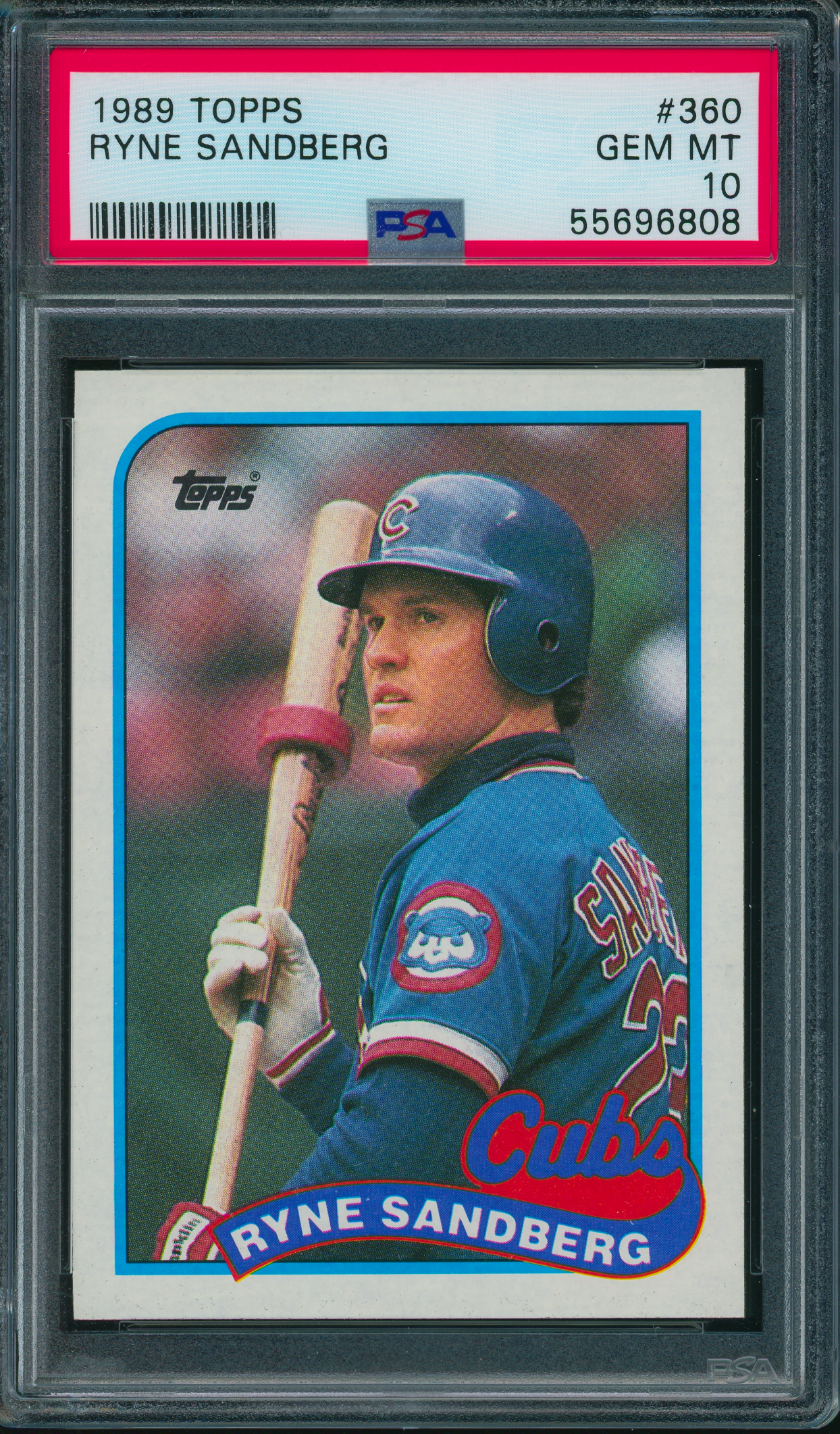 Home / Shop / Cards / Baseball / Cubs / 1989 Topps #360 Ryne Sandberg PSA 10 GEM MINT1989 Topps #360 Ryne Sandberg PSA 10 GEM MINTRelated products Baseball , Cards 1984 Topps Traded #42T Dwight Gooden RC Rookie PSA 10 GEM MT Baseball , Cards 1980 Topps #600 Reggie Jackson Yankees PSA 9 MINT Baseball , Cards 1986 Topps Tiffany #159 Orel Hershiser Dodgers PSA 9 MINT Baseball , Cards 1970 Kelloggs #7 Tom Seaver Mets PSA 10 GEM MT