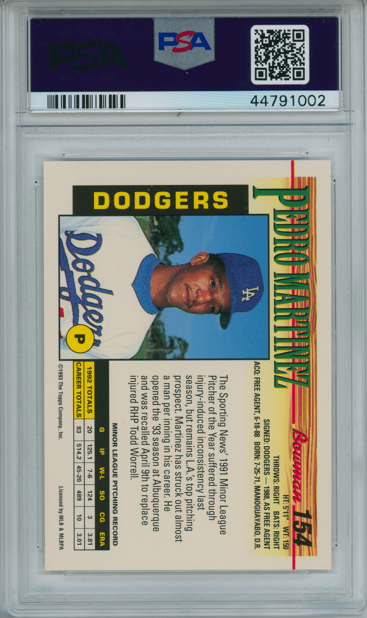 1993 Bowman #154 Pedro Martinez PSA 10 GEM MINT