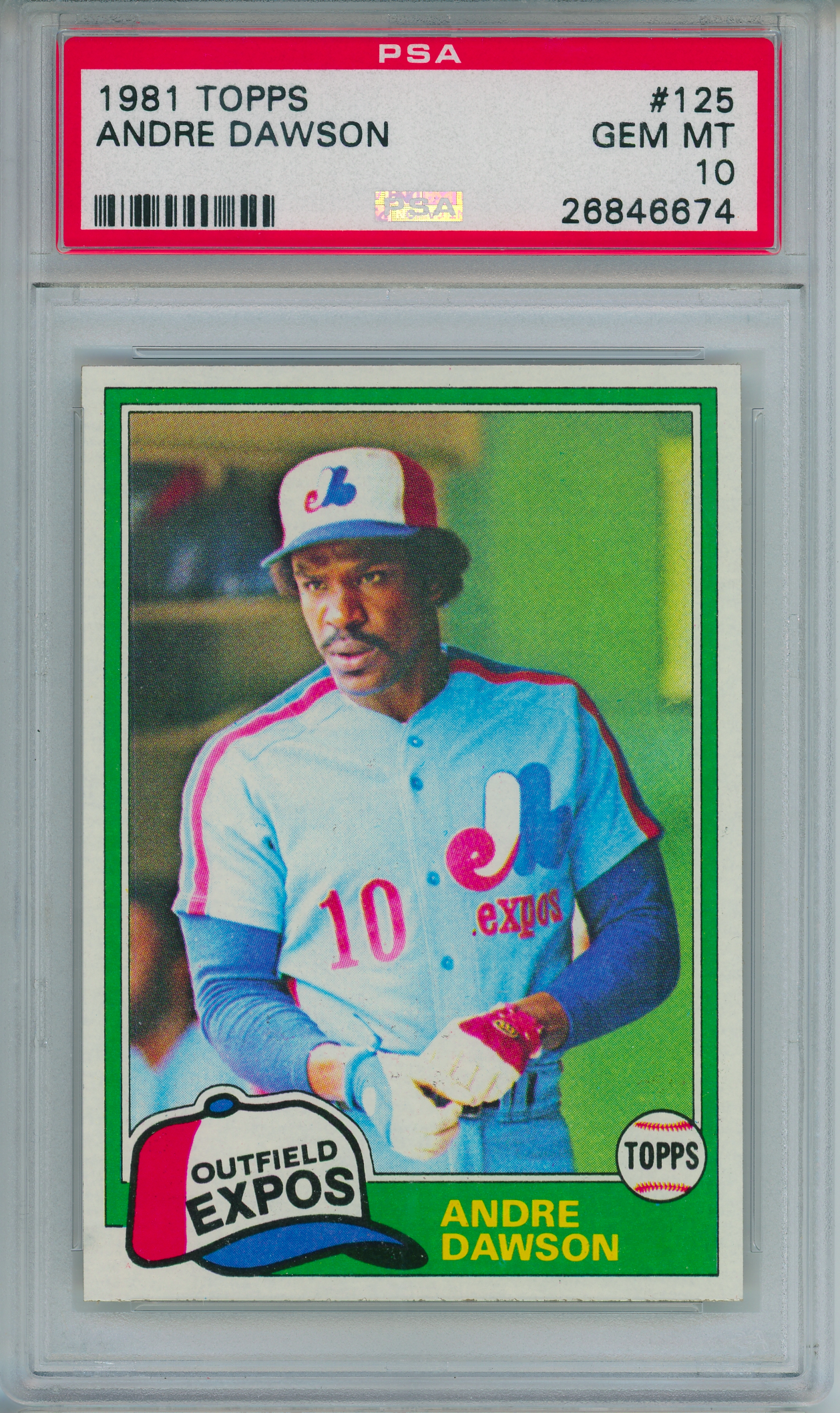 Home / Shop / Cards / Baseball / Expos / 1981 Topps #125 Andre Dawson PSA 10 GEM MINT1981 Topps #125 Andre Dawson PSA 10 GEM MINTRelated products Baseball , Cards 1977 Topps #640 Carlton Fisk Red Sox PSA 9 MINT Baseball , Cards 1990 Topps Tiffany #210 Ryne Sandberg Cubs PSA 10 GEM MT Baseball , Cards 1986 Topps Tiffany #159 Orel Hershiser Dodgers PSA 9 MINT Baseball , Cards 1993 Bowman #511 Derek Jeter RC Yankees PSA 10 Gem MT