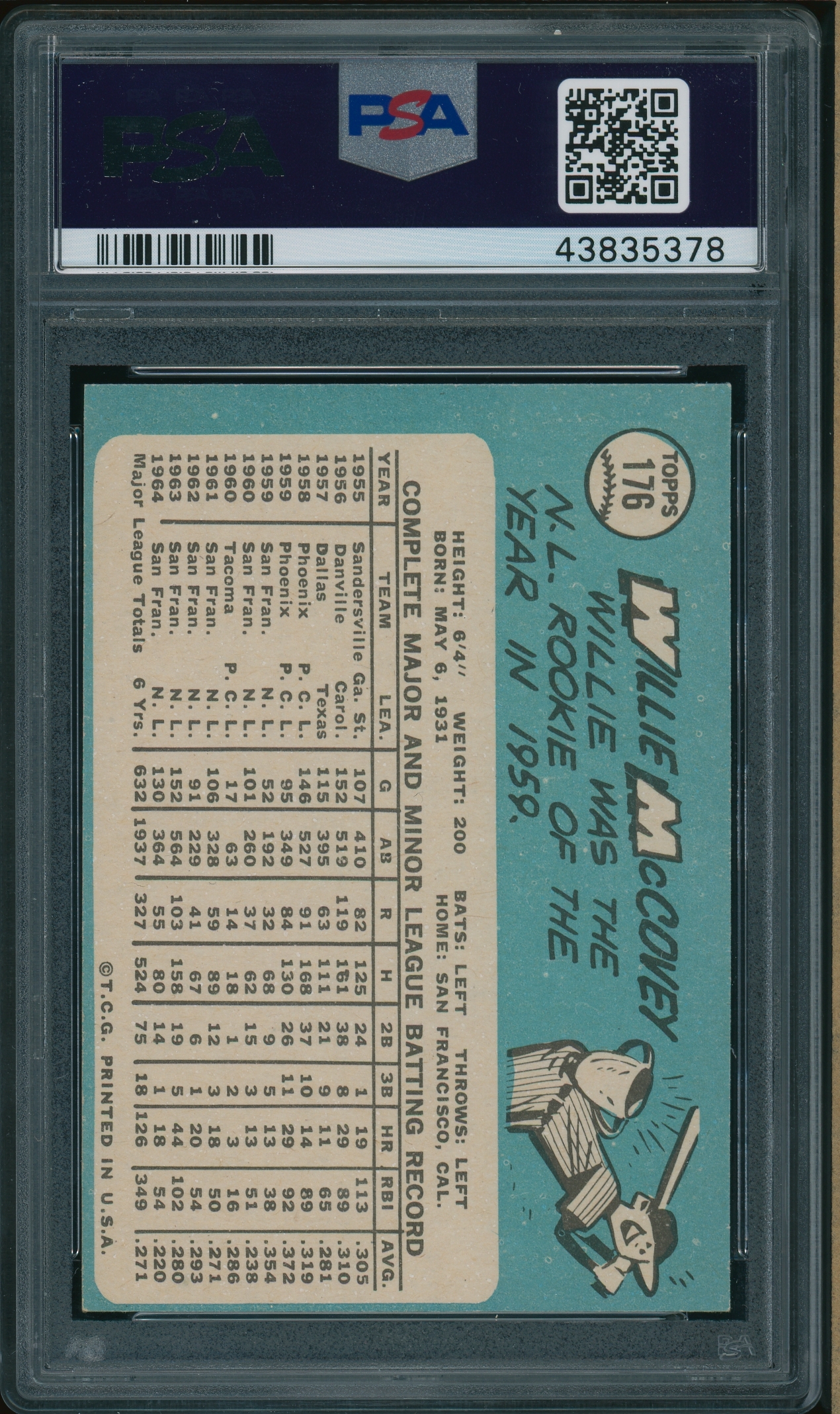 Home / Shop / Cards / Baseball / Giants / 1965 Topps #176 Willie McCovey PSA 8++ NEAR-MINT1965 Topps #176 Willie McCovey PSA 8++ NEAR-MINTRelated products Baseball , Cards 1983 Topps #163 Cal Ripken Jr. Orioles PSA 10 GEM MT Baseball , Cards 1977 Topps #450 Pete Rose Reds PSA 9 MINT Baseball , Cards 1970 Kelloggs #7 Tom Seaver Mets PSA 10 GEM MT Baseball , Cards 1961 Topps #2 Roger Maris Yankees PSA 8++ Centered