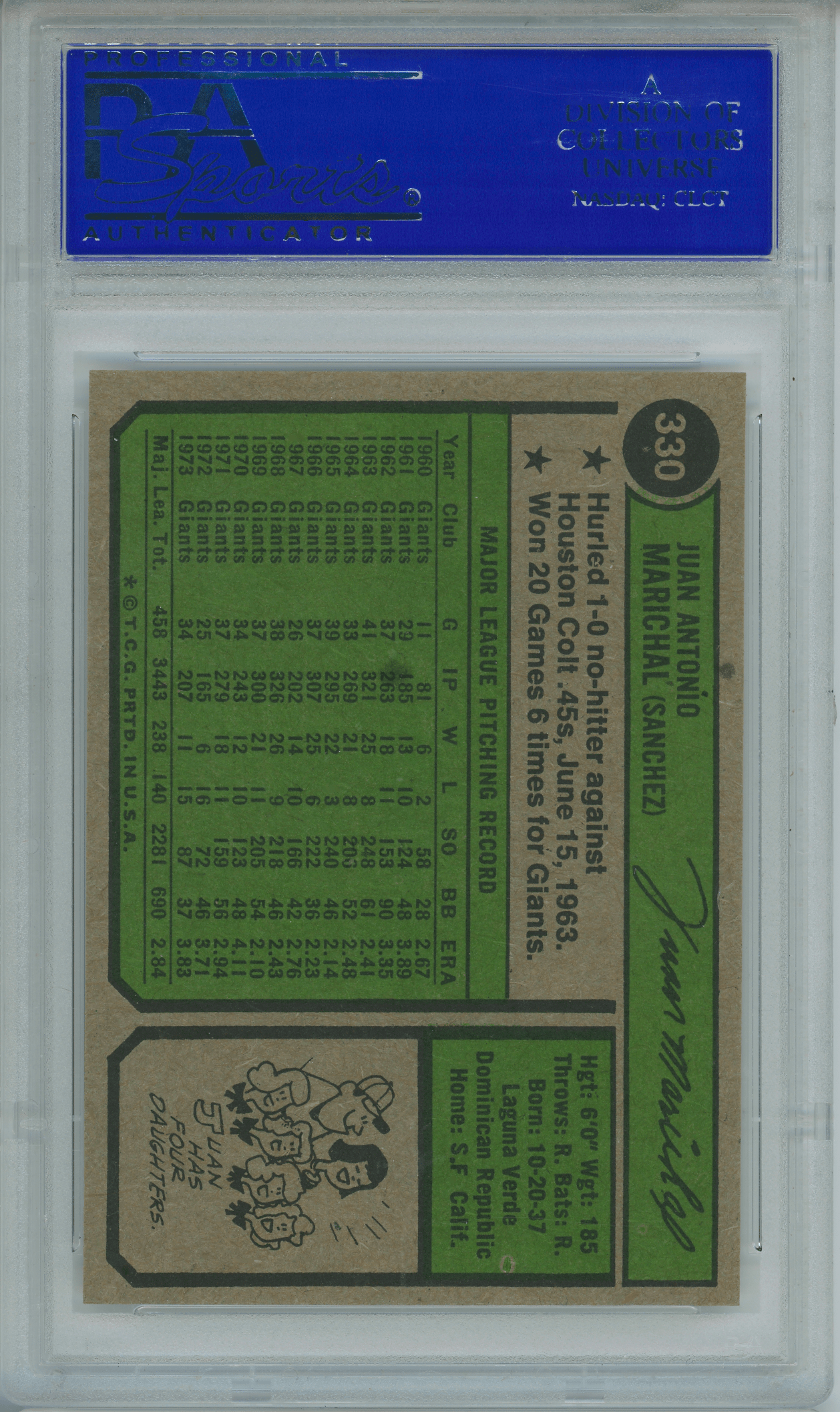 Home / Shop / Cards / Baseball / Giants / 1974 Topps #330 Juan Marichal PSA 9 MINT1974 Topps #330 Juan Marichal PSA 9 MINTRelated products Baseball , Cards 1977 Topps #10 Reggie Jackson Yankees PSA 9 MINT All-Star Cups , Baseball 2019 Topps Heritage #413 Gleyber Torres Purple Refractor PSA 10 GEM MT Baseball , Cards 1988 Topps Big #11 Dwight Gooden PSA 10 GEM MT Baseball , Cards 1983 Topps #580 Tom Seaver Reds PSA 10 GEM MT