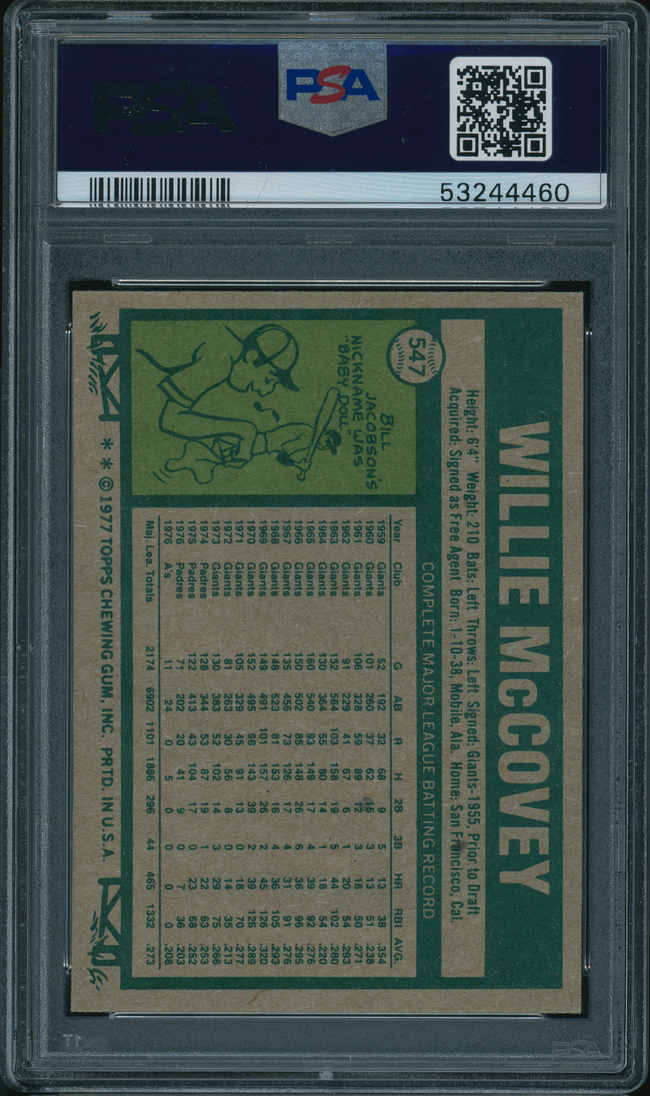 Home / Shop / Cards / Baseball / Giants / 1977 Topps #547 Willie McCovey PSA 9 MINT1977 Topps #547 Willie McCovey PSA 9 MINTRelated products Baseball , Cards 1973 Topps #627 Luis Alvarado White Sox PSA 8++ Centered Baseball , Cards 1983 Topps #163 Cal Ripken Jr. Orioles PSA 10 GEM MT Baseball , Cards 1993 Bowman #511 Derek Jeter RC Yankees PSA 10 Gem MT Baseball , Cards 1983 Topps #580 Tom Seaver Reds PSA 10 GEM MT