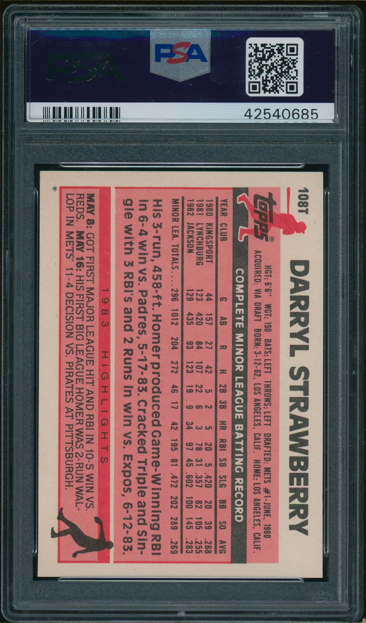 Home / Shop / Cards / Baseball / Mets / 1983 Topps Traded #108T Darryl Strawberry RC PSA 10 GEM MINT1983 Topps Traded #108T Darryl Strawberry RC PSA 10 GEM MINTRelated products Baseball , Cards 1973 Topps #627 Luis Alvarado White Sox PSA 8++ Centered Baseball , Cards 1961 Topps #388 Roberto Clemente Pirates PSA 8++ Centered1961 Topps #388 Roberto Clemente Pirates PSA 8++ Centered Baseball , Cards 1983 Topps #163 Cal Ripken Jr. Orioles PSA 10 GEM MT Baseball , Cards 1980 Topps #600 Reggie Jackson Yankees PSA 9 MINT