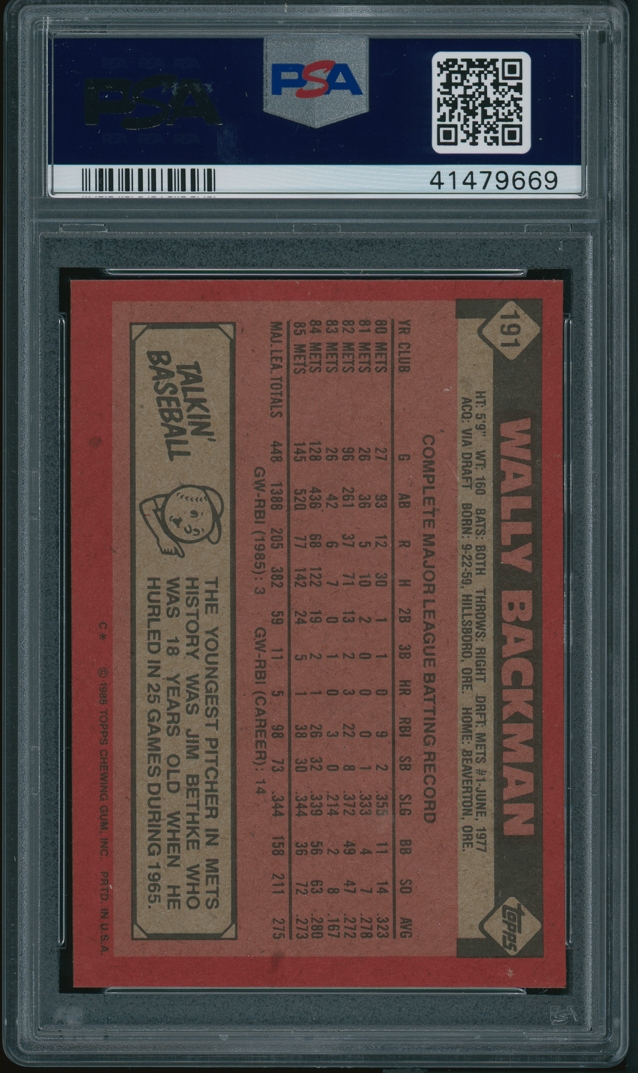 Home / Shop / Cards / Baseball / Mets / 1986 Topps #191 Wally Backman PSA 9 MINT1986 Topps #191 Wally Backman PSA 9 MINTRelated products All-Star Cups , Angels 2013 Topps Heritage #430 Mike Trout PSA 10 GEM MT Baseball , Cards 1983 Topps #580 Tom Seaver Reds PSA 10 GEM MT Baseball , Cards 1983 Topps #163 Cal Ripken Jr. Orioles PSA 10 GEM MT Baseball , Cards 1961 Topps #388 Roberto Clemente Pirates PSA 8++ Centered1961 Topps #388 Roberto Clemente Pirates PSA 8++ Centered