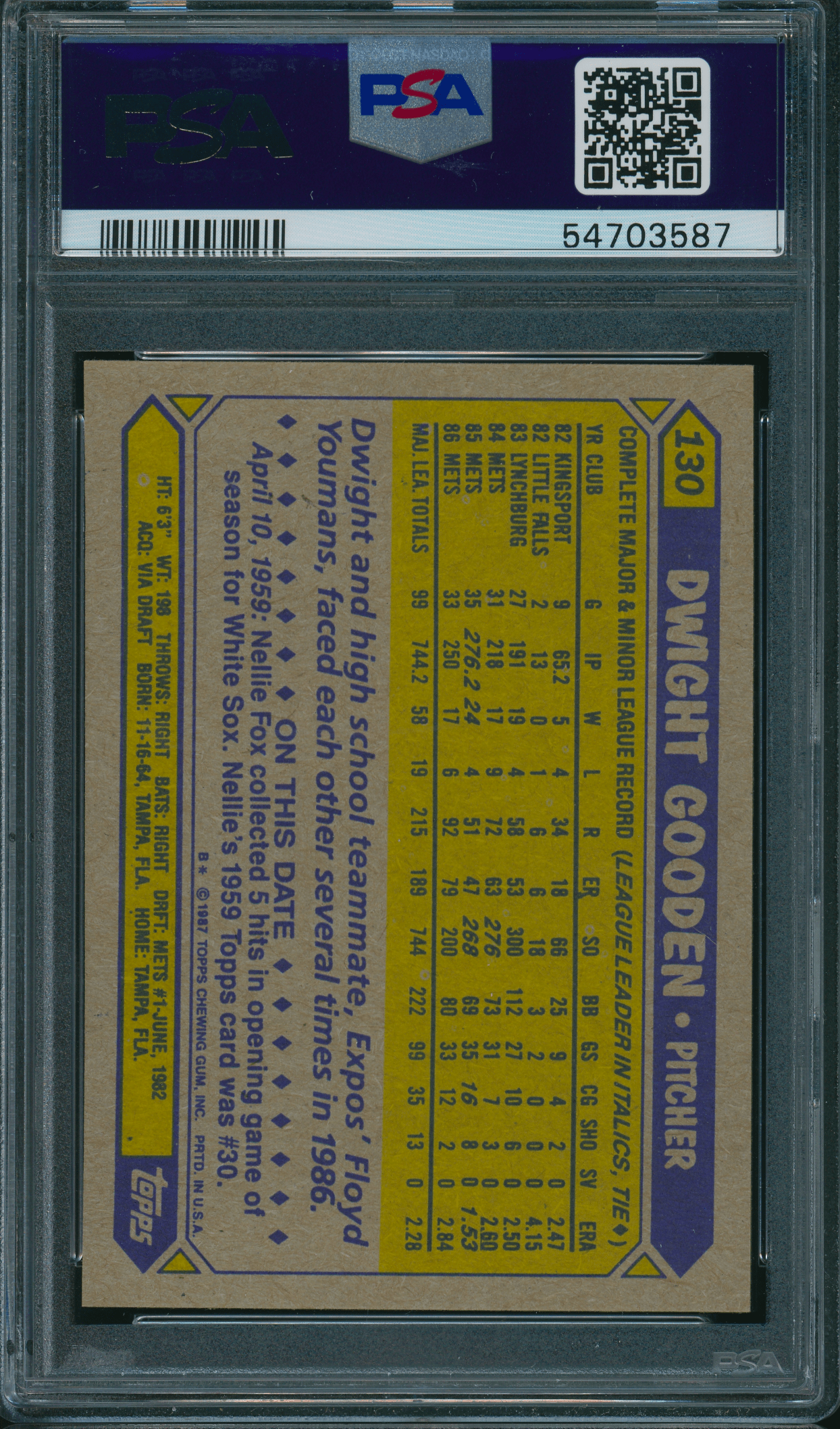 Home / Shop / Cards / Baseball / Mets / 1987 Topps #130 Dwight Gooden PSA 10 GEM MINT1987 Topps #130 Dwight Gooden PSA 10 GEM MINTRelated products All-Star Cups , Baseball 2018 Topps Heritage #25 Aaron Judge PSA 10 Baseball , Cards 1977 Topps #640 Carlton Fisk Red Sox PSA 9 MINT Baseball , Cards 1977 Topps #10 Reggie Jackson Yankees PSA 9 MINT Baseball , Cards 1993 Bowman #511 Derek Jeter RC Yankees PSA 10 Gem MT