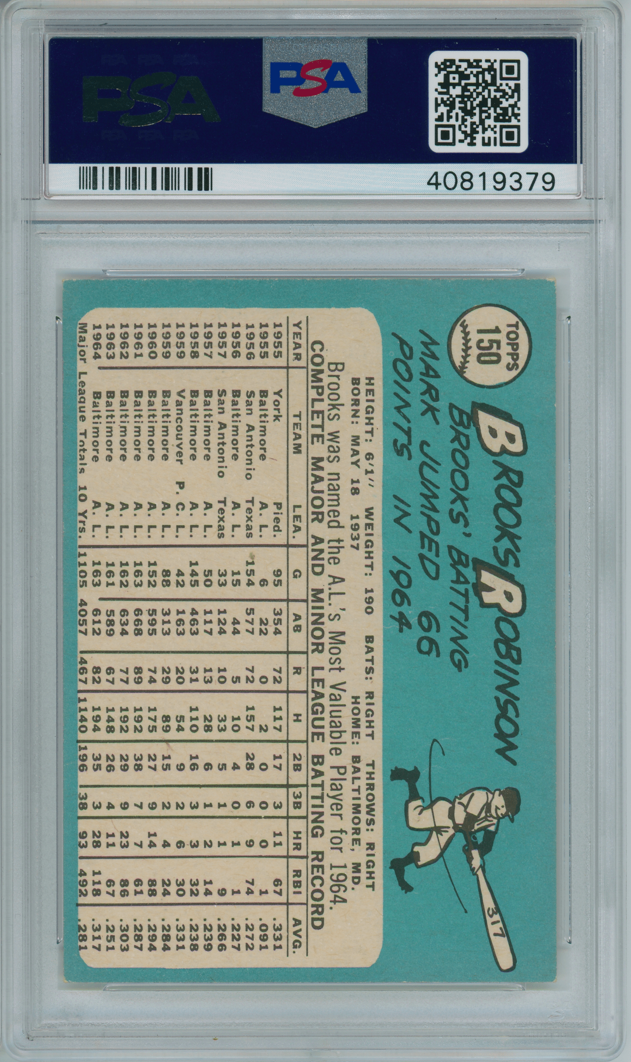 Home / Shop / Cards / Baseball / Orioles / 1965 Topps #150 Brooks Robinson PSA 7++ Centered1965 Topps #150 Brooks Robinson PSA 7++ CenteredRelated products Baseball , Cards 1986 Topps Tiffany #159 Orel Hershiser Dodgers PSA 9 MINT Baseball , Cards 1970 Kelloggs #7 Tom Seaver Mets PSA 10 GEM MT Baseball , Cards 1989 Bowman #211 Tino Martinez RC Yankees PSA 10 GEM MT Baseball , Cards 1983 Topps #163 Cal Ripken Jr. Orioles PSA 10 GEM MT