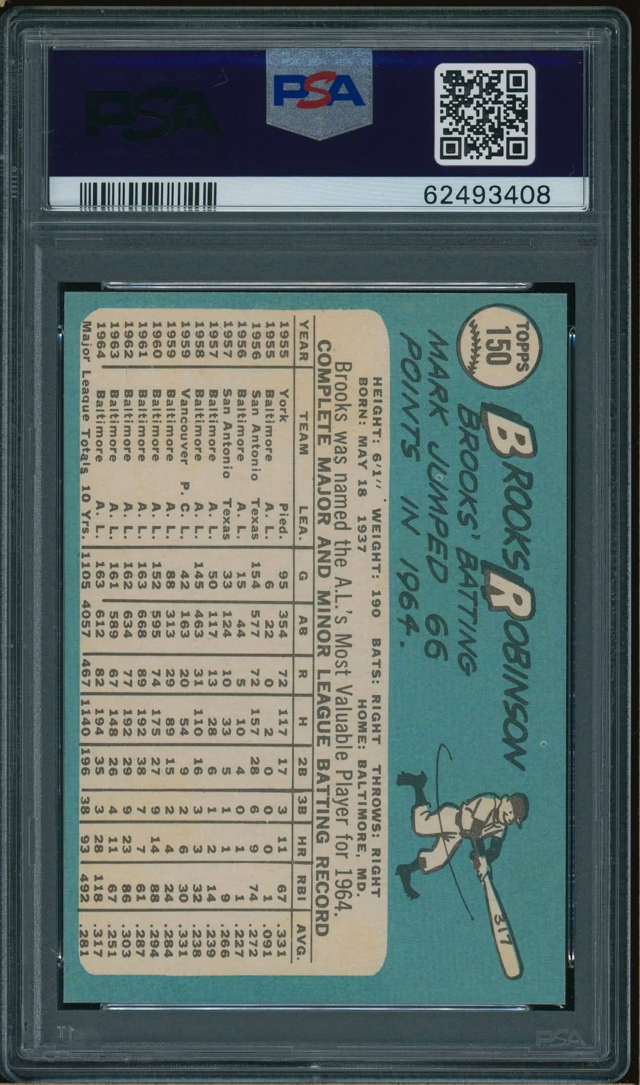 Home / Shop / Cards / Baseball / Orioles / 1965 Topps #150 Brooks Robinson PSA 8++ NM-MT1965 Topps #150 Brooks Robinson PSA 8++ NM-MTRelated products All-Star Cups , Angels 2013 Topps Heritage #430 Mike Trout PSA 10 GEM MT All-Star Cups , Baseball 1968 Topps #45 Tom Seaver Mets PSA 8.5 Baseball , Cards 1980 Topps #600 Reggie Jackson Yankees PSA 9 MINT Baseball , Cards 1961 Topps #388 Roberto Clemente Pirates PSA 8++ Centered1961 Topps #388 Roberto Clemente Pirates PSA 8++ Centered