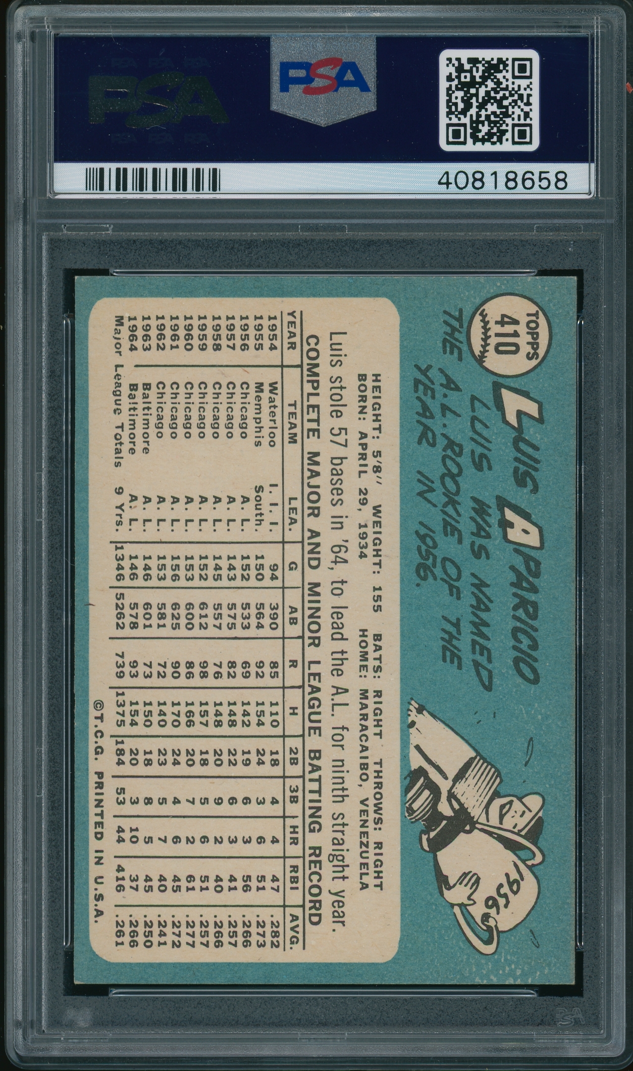 1965 Topps #410 Luis Aparicio PSA 8++ NEAR-MINT
