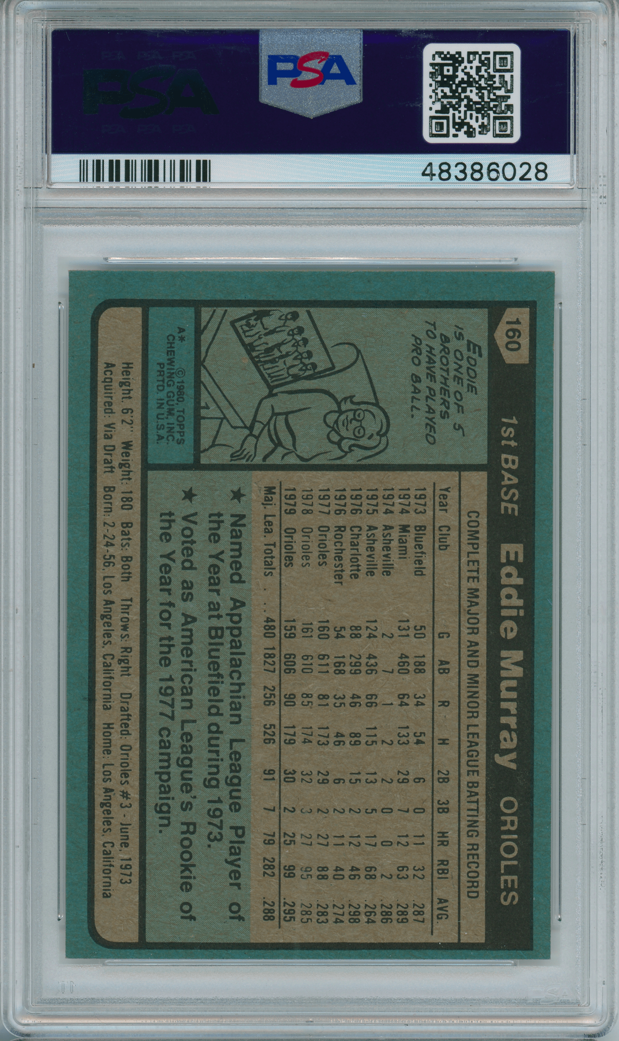 Home / Shop / Cards / Baseball / Orioles / 1980 Topps #160 Eddie Murray PSA 9 MINT1980 Topps #160 Eddie Murray PSA 9 MINTRelated products Baseball , Cards 1989 Bowman #211 Tino Martinez RC Yankees PSA 10 GEM MT Baseball , Cards 1977 Topps #10 Reggie Jackson Yankees PSA 9 MINT Baseball , Cards 1988 Topps Big #11 Dwight Gooden PSA 10 GEM MT Baseball , Cards 1961 Topps #388 Roberto Clemente Pirates PSA 8++ Centered1961 Topps #388 Roberto Clemente Pirates PSA 8++ Centered