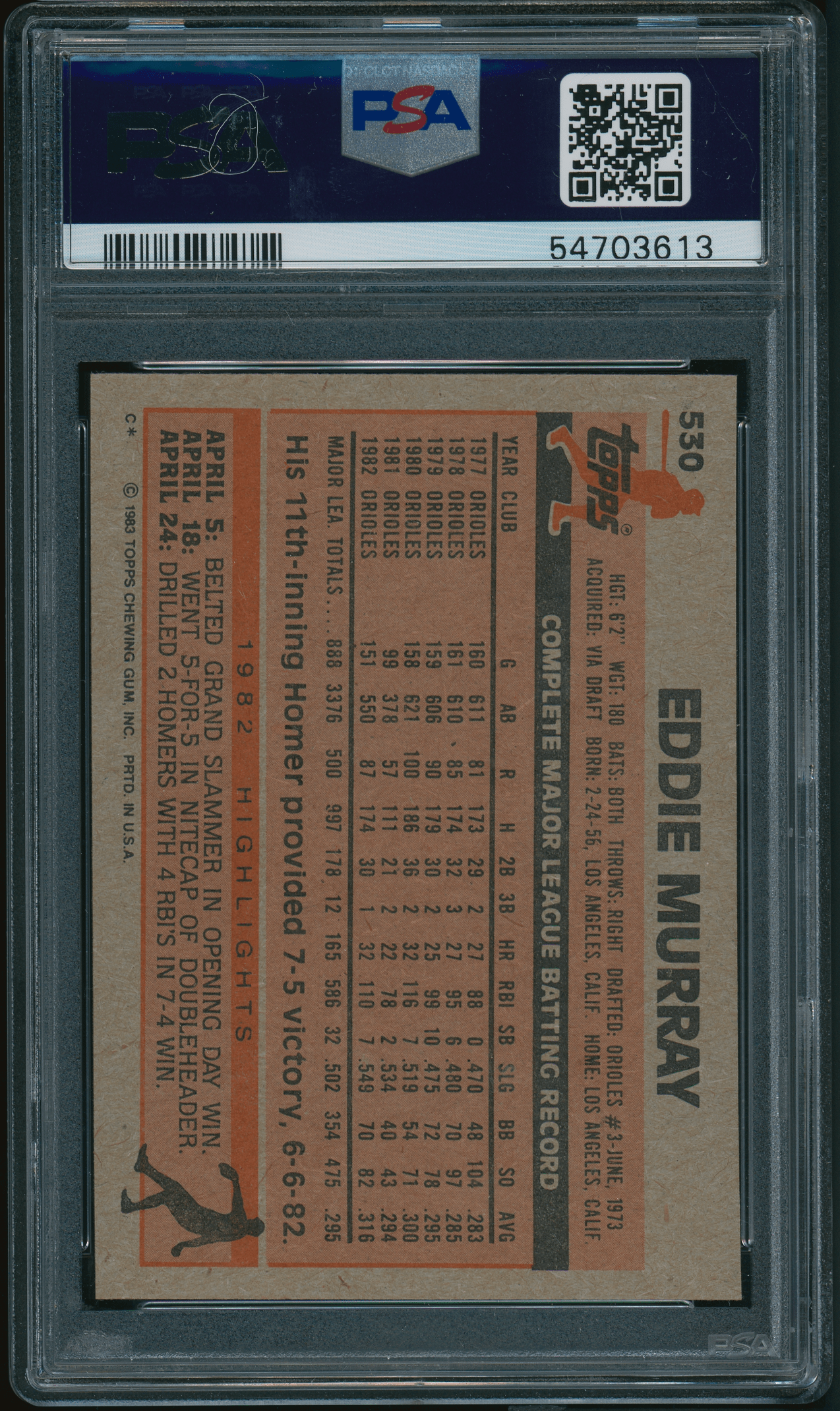 1983 Topps #530 Eddie Murray PSA 10 GEM MINT