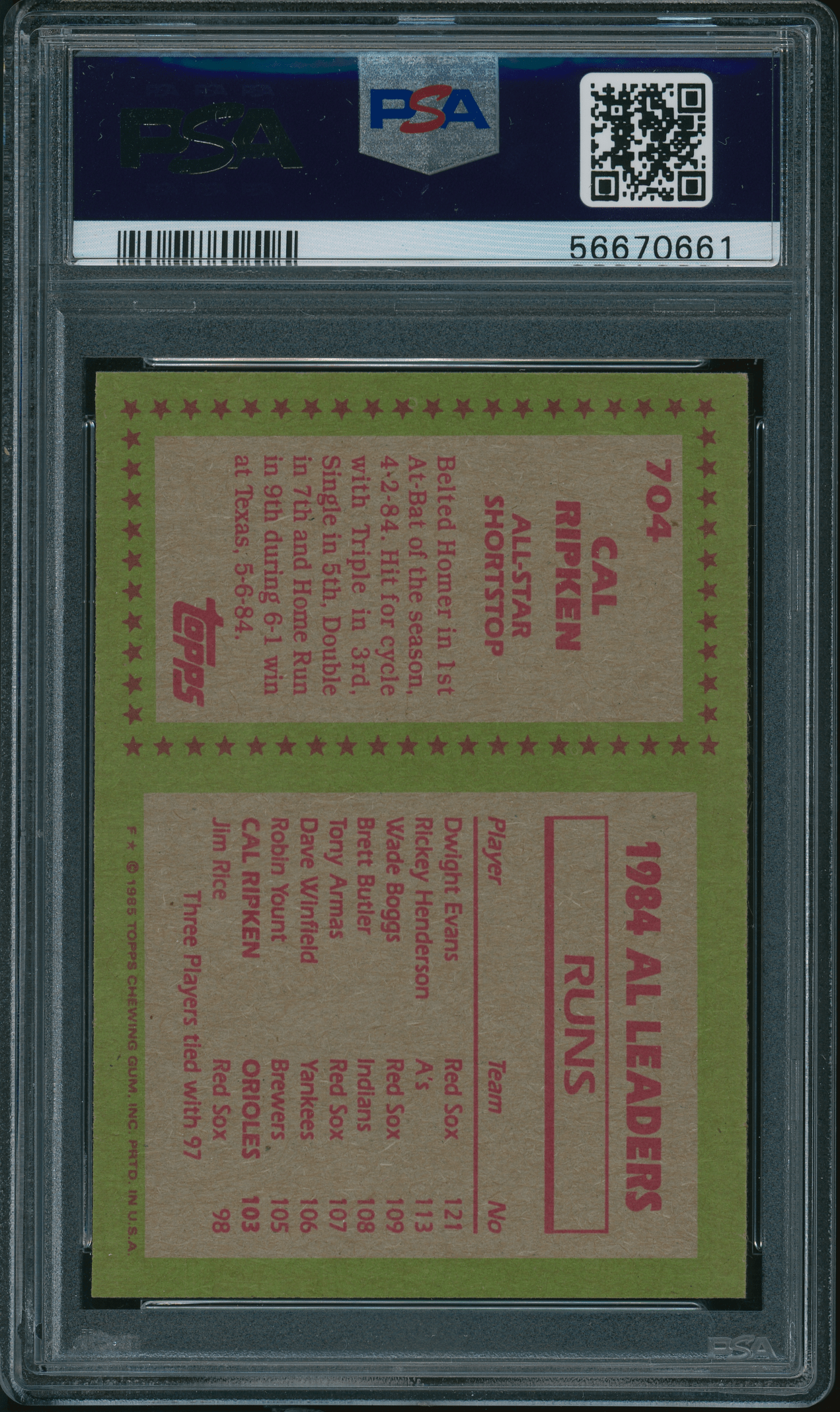 1985 Topps #704 Cal Ripken Jr. PSA 10 GEM MINT