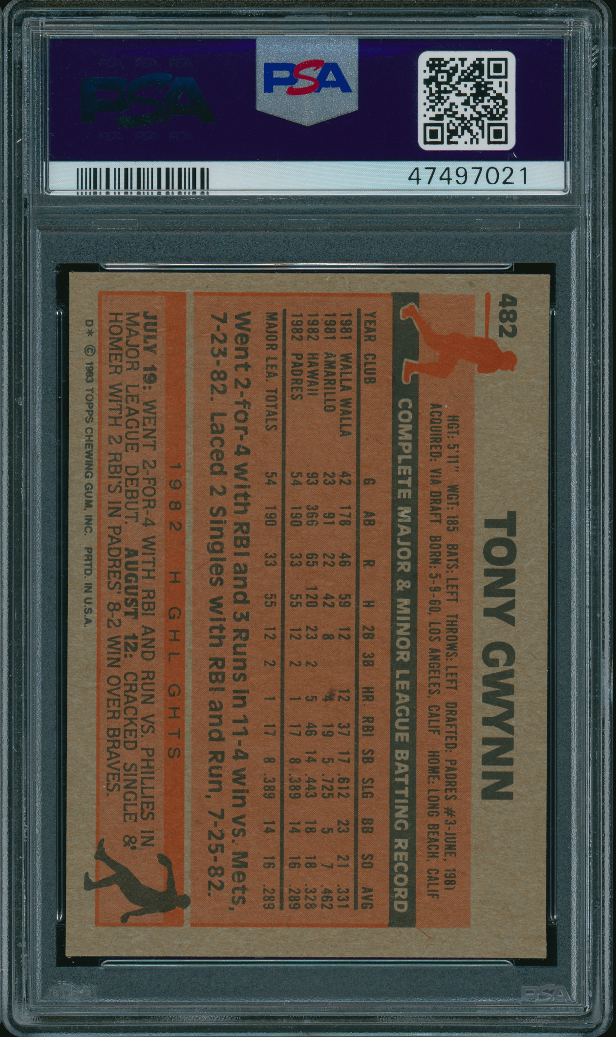 1983 Topps #482 Tony Gwynn RC Rookie PSA 9 MINT