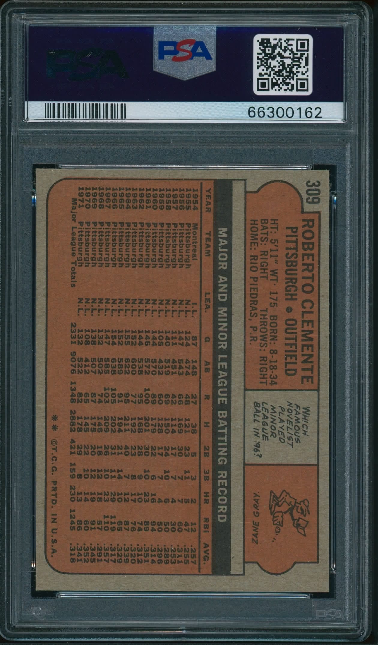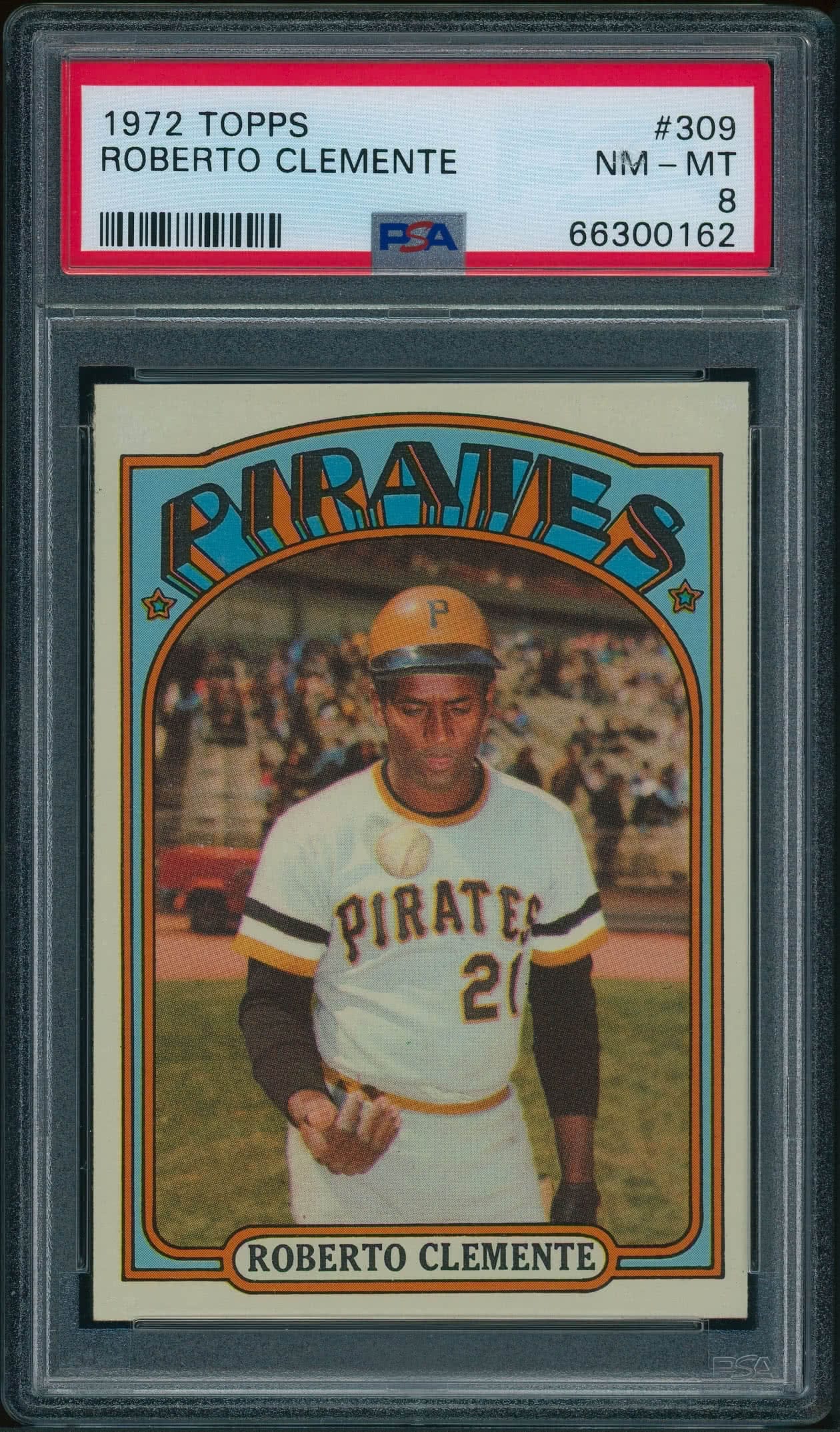 Home / Shop / Cards / Baseball / Pirates / 1972 Topps #309 Roberto Clemente PSA 8 NM-MT+++1972 Topps #309 Roberto Clemente PSA 8 NM-MT+++Related products Baseball , Cards 1977 Topps #450 Pete Rose Reds PSA 9 MINT Baseball , Cards 1984 Topps Traded #42T Dwight Gooden RC Rookie PSA 10 GEM MT Baseball , Cards 1989 Bowman #211 Tino Martinez RC Yankees PSA 10 GEM MT All-Star Cups , Angels 2013 Topps Heritage #430 Mike Trout PSA 10 GEM MT