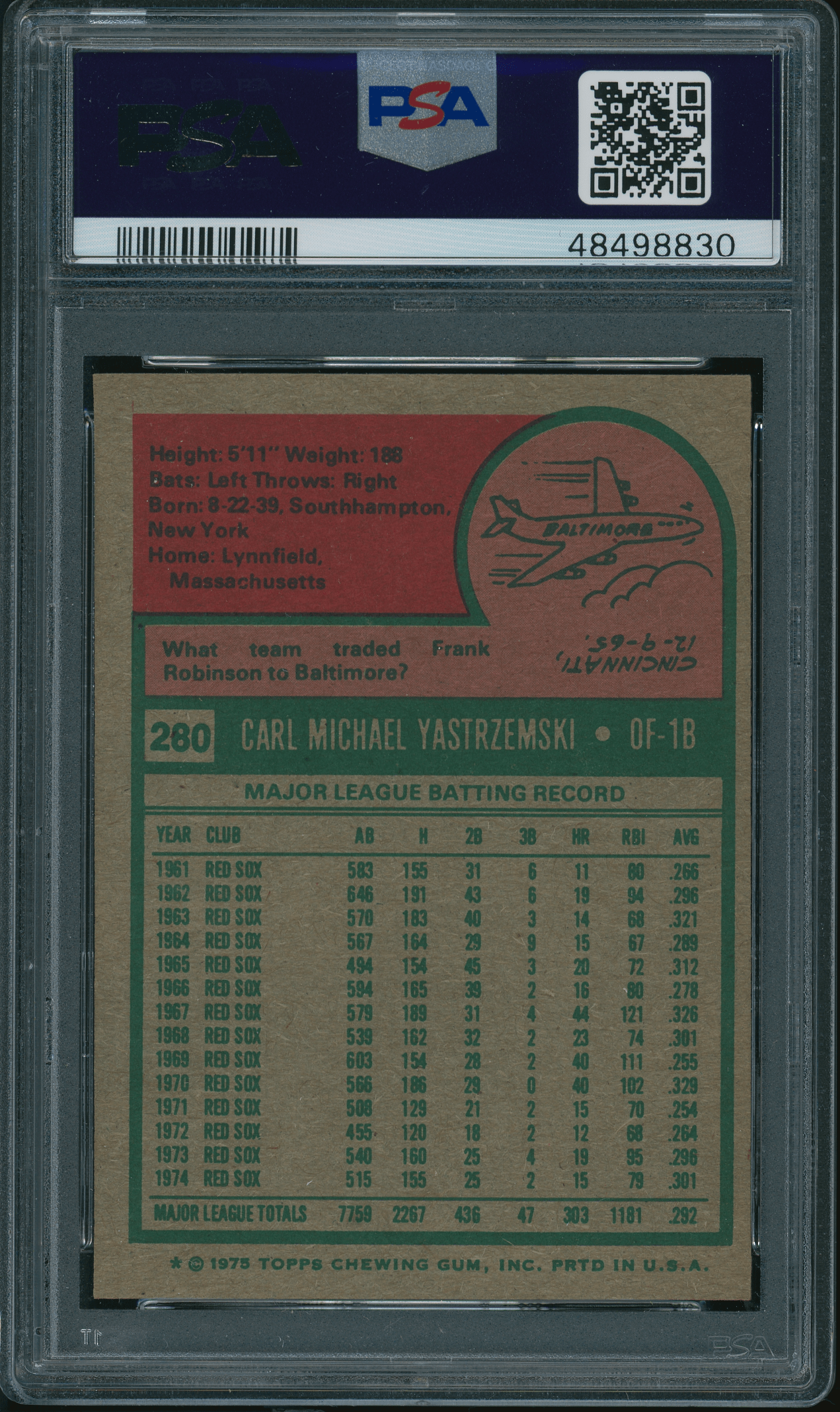 Home / Shop / Cards / Baseball / Red Sox / 1975 Topps #280 Carl Yastrzemski PSA 8 NM-MT1975 Topps #280 Carl Yastrzemski PSA 8 NM-MTRelated products All-Star Cups , Angels 2013 Topps Heritage #430 Mike Trout PSA 10 GEM MT Baseball , Cards 1988 Topps Big #11 Dwight Gooden PSA 10 GEM MT All-Star Cups , Baseball 1968 Topps #45 Tom Seaver Mets PSA 8.5 Baseball , Cards 1977 Topps #450 Pete Rose Reds PSA 9 MINT