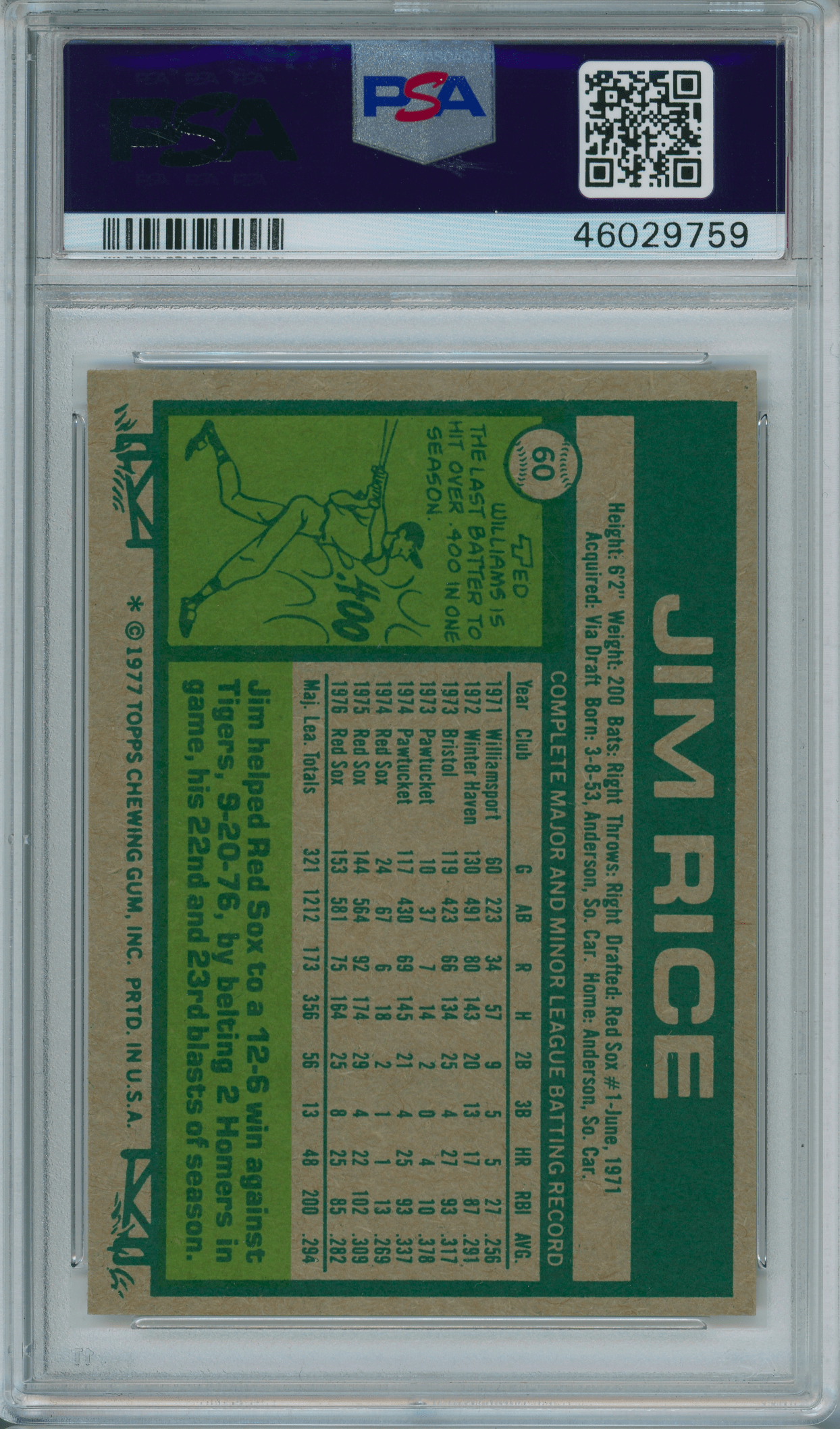Home / Shop / Cards / Baseball / Red Sox / 1977 Topps #60 Jim Rice PSA 9 MINT1977 Topps #60 Jim Rice PSA 9 MINTRelated products Baseball , Cards 1990 Topps Tiffany #210 Ryne Sandberg Cubs PSA 10 GEM MT Baseball , Cards 1977 Topps #10 Reggie Jackson Yankees PSA 9 MINT Baseball , Cards 1961 Topps #388 Roberto Clemente Pirates PSA 8++ Centered1961 Topps #388 Roberto Clemente Pirates PSA 8++ Centered Baseball , Cards 1980 Topps #600 Reggie Jackson Yankees PSA 9 MINT