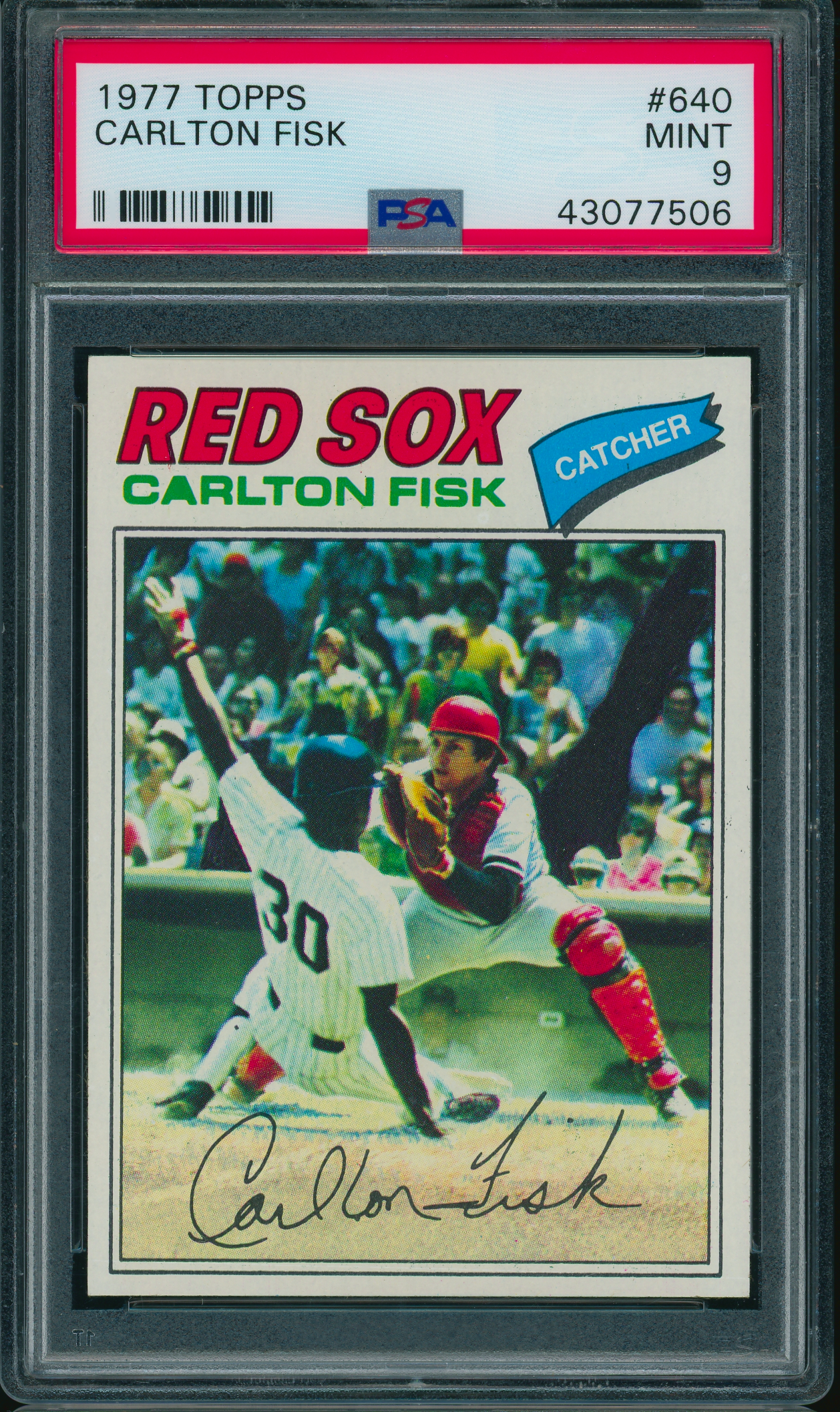 Home / Shop / Cards / Baseball / Red Sox / 1977 Topps #640 Carlton Fisk Red Sox PSA 9 MINT1977 Topps #640 Carlton Fisk Red Sox PSA 9 MINTRelated products Baseball , Cards 1970 Kelloggs #7 Tom Seaver Mets PSA 10 GEM MT Baseball , Cards 1977 Topps #10 Reggie Jackson Yankees PSA 9 MINT Baseball , Cards 1984 Topps Traded #42T Dwight Gooden RC Rookie PSA 10 GEM MT Baseball , Cards 1958 Topps #370 Yogi Berra Yankees PSA 8++ Centered