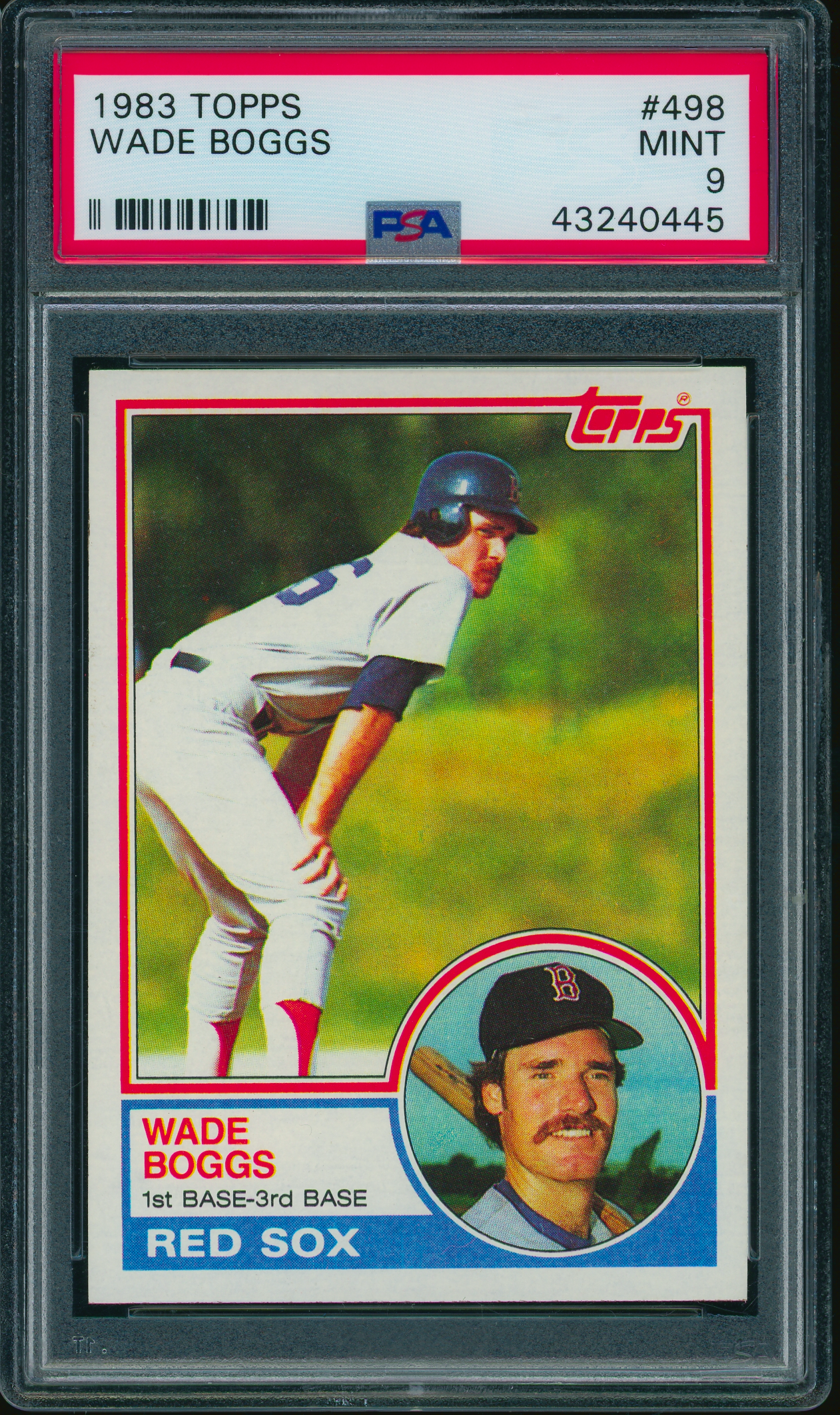Home / Shop / Cards / Baseball / Red Sox / 1983 Topps #498 Wade Boggs RC Rookie PSA 9 MINT1983 Topps #498 Wade Boggs RC Rookie PSA 9 MINTRelated products Baseball , Cards 1980 Topps #600 Reggie Jackson Yankees PSA 9 MINT Baseball , Cards 1973 Topps #627 Luis Alvarado White Sox PSA 8++ Centered Baseball , Cards 1958 Topps #370 Yogi Berra Yankees PSA 8++ Centered Baseball , Cards 1977 Topps #10 Reggie Jackson Yankees PSA 9 MINT