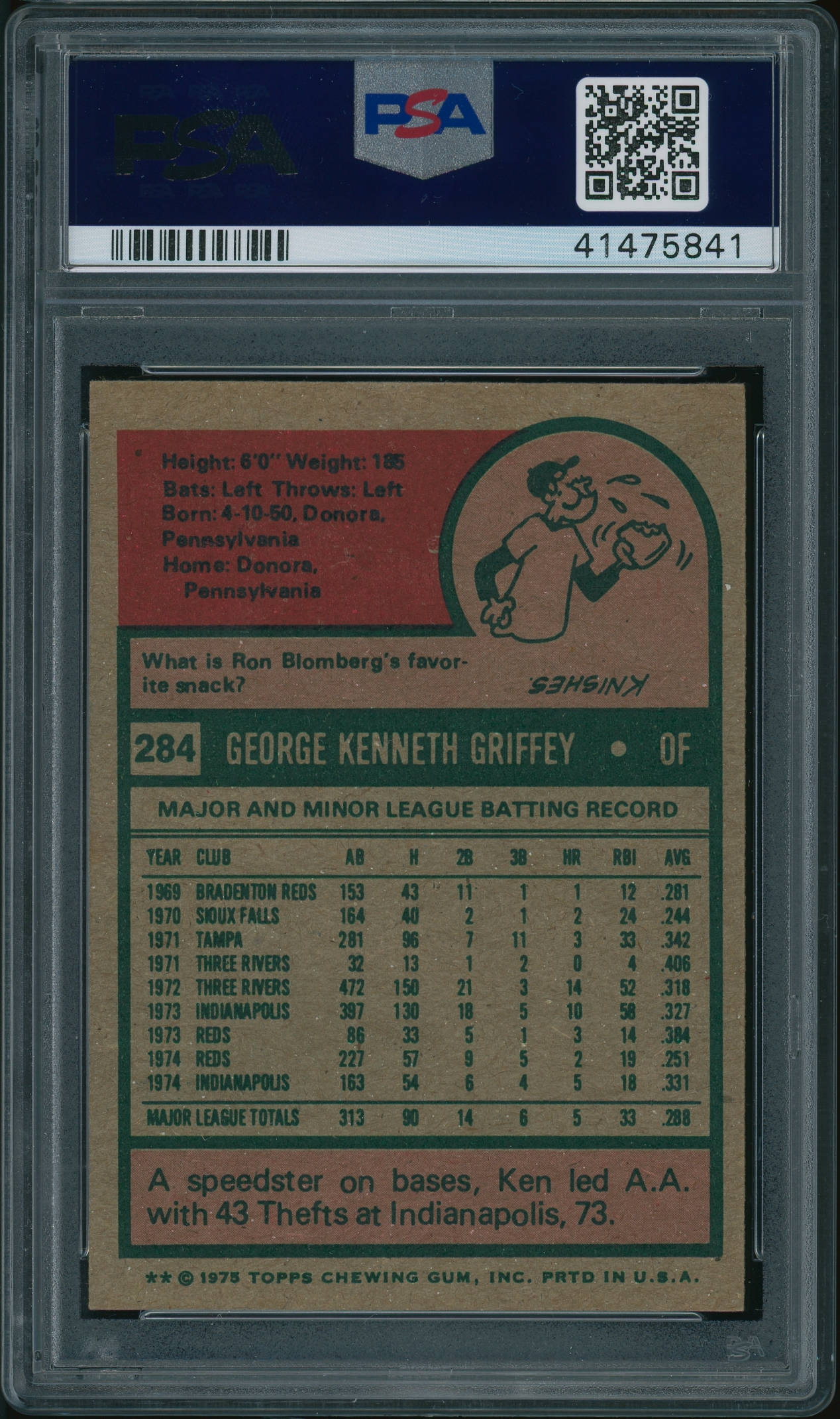 1975 Topps #284 Ken Griffey PSA 8++ NEAR-MINT