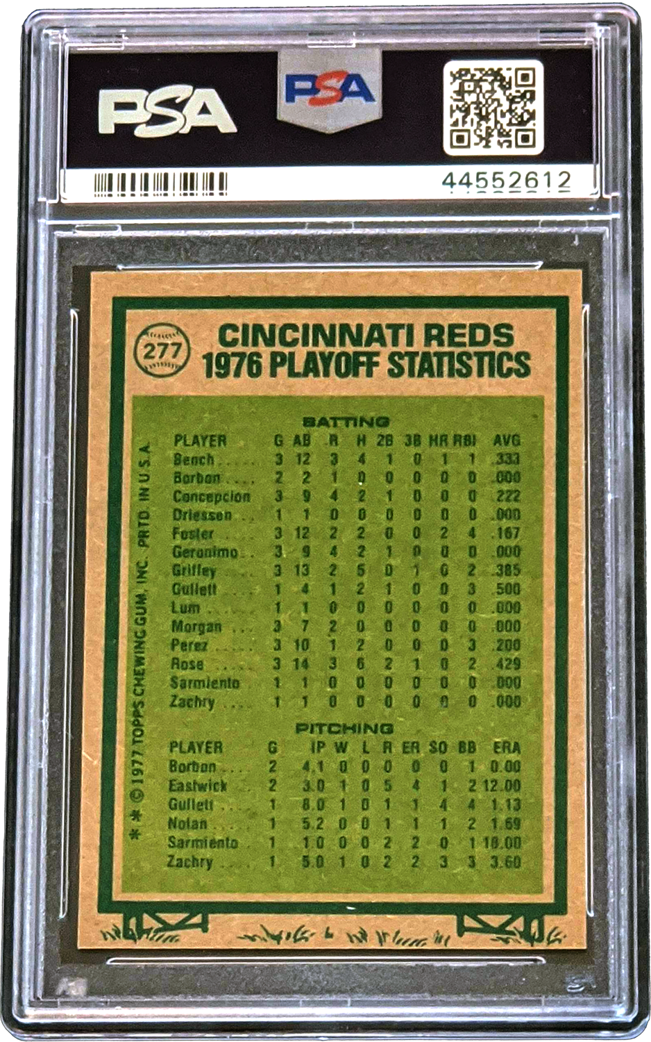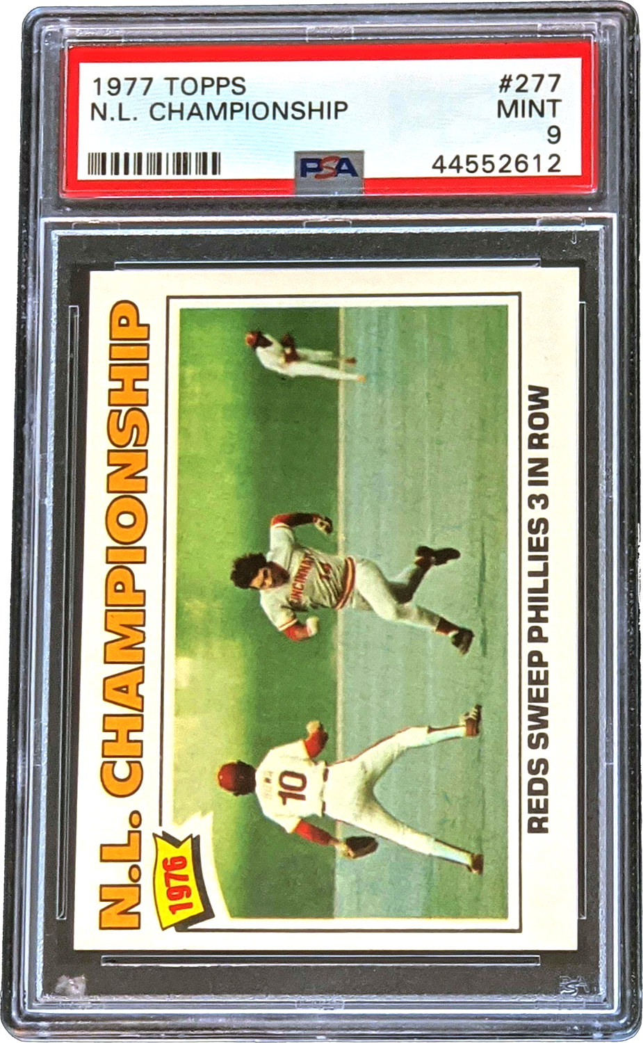 Home / Shop / Cards / Baseball / Reds / 1977 Topps #277 N.L. Championship Reds Pete Rose PSA 91977 Topps #277 N.L. Championship Reds Pete Rose PSA 9Related products Baseball , Cards 1993 Bowman #511 Derek Jeter RC Yankees PSA 10 Gem MT Baseball , Cards 1977 Topps #10 Reggie Jackson Yankees PSA 9 MINT Baseball , Cards 1988 Topps Big #11 Dwight Gooden PSA 10 GEM MT Baseball , Cards 1983 Topps #580 Tom Seaver Reds PSA 10 GEM MT