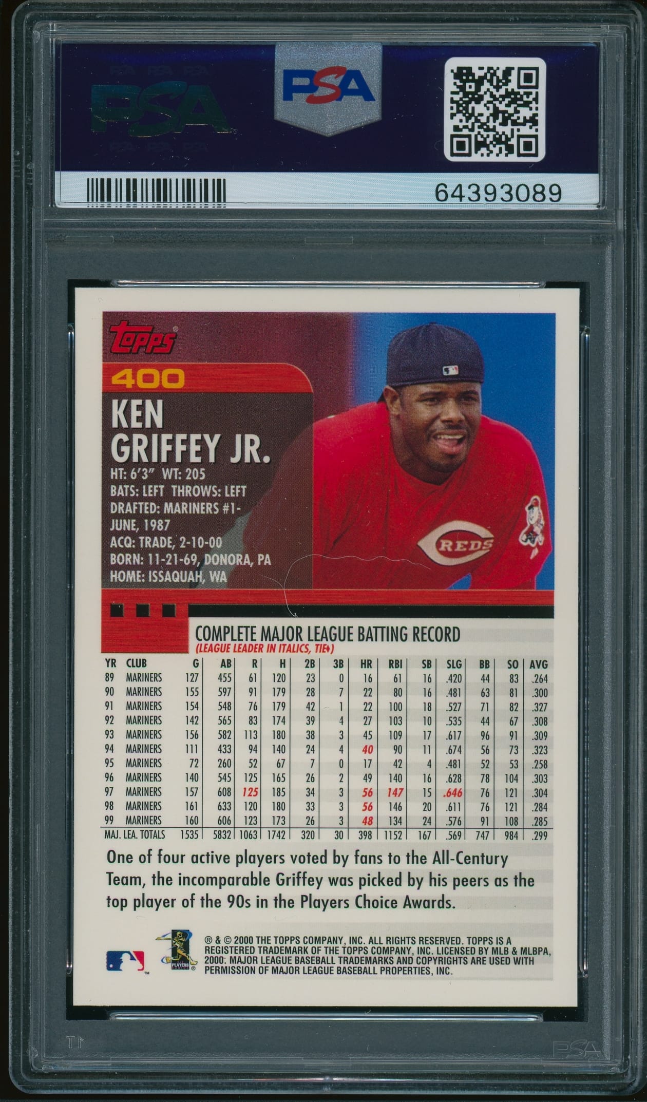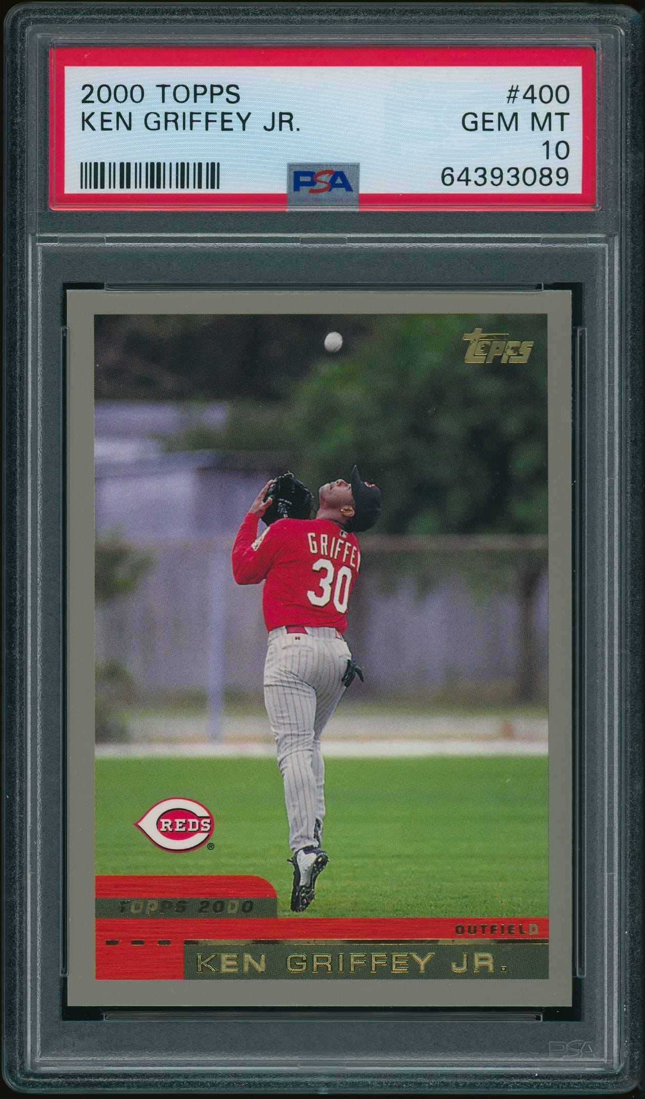 Home / Shop / Cards / Baseball / Reds / 2000 Topps #400 Ken Griffey Jr. PSA 10 GEM MINT2000 Topps #400 Ken Griffey Jr. PSA 10 GEM MINTRelated products Baseball , Cards 1983 Topps #163 Cal Ripken Jr. Orioles PSA 10 GEM MT Baseball , Cards 1977 Topps #640 Carlton Fisk Red Sox PSA 9 MINT Athletics , Baseball 1974 Topps #290 Vida Blue Athletics PSA 9 MINT All-Star Cups , Baseball 2018 Topps Heritage #25 Aaron Judge PSA 10