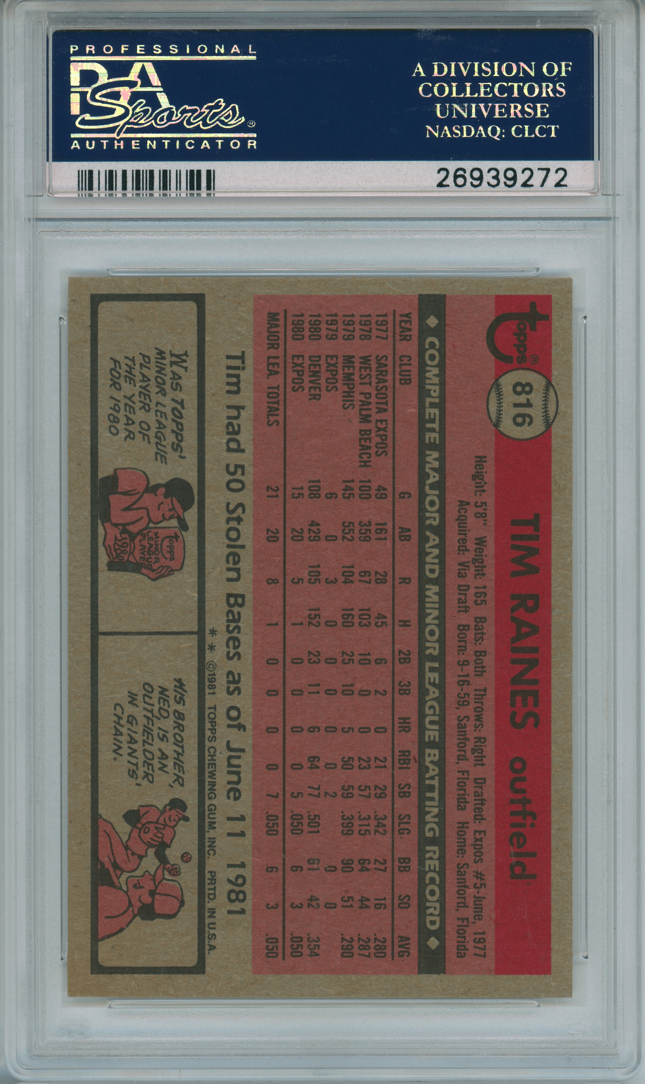 1981 Topps Traded #816 Tim Raines RC Rookie PSA 9 MINT