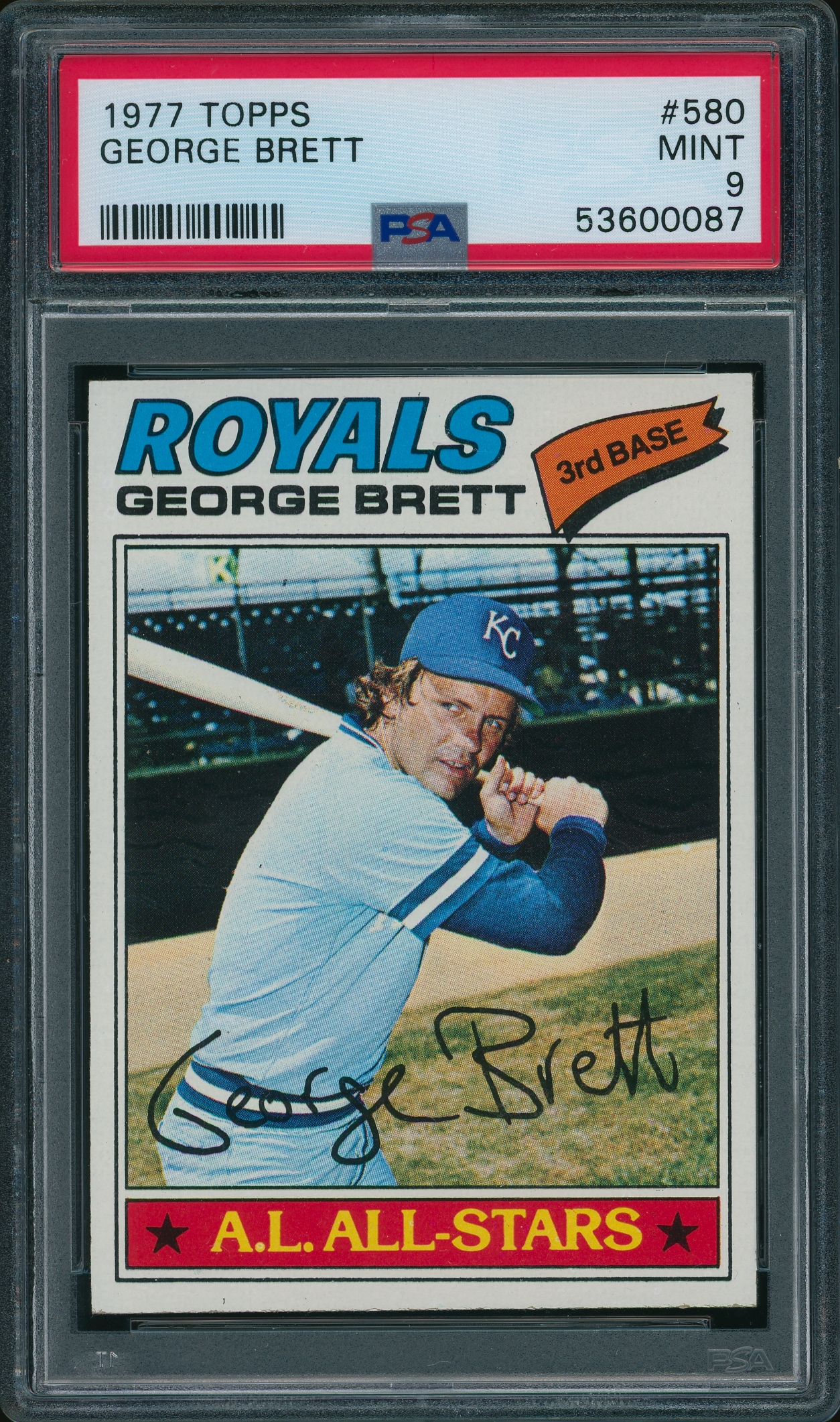 Home / Shop / Cards / Baseball / Royals / 1977 Topps #580 George Brett PSA 9 MINT1977 Topps #580 George Brett PSA 9 MINTRelated products Baseball , Cards 1977 Topps #10 Reggie Jackson Yankees PSA 9 MINT All-Star Cups , Baseball 1969 Topps #95 Johnny Bench All-Star Rookie Reds PSA 8++ Centered All-Star Cups , Baseball 2018 Topps Heritage #25 Aaron Judge PSA 10 Baseball , Cards 1980 Topps #600 Reggie Jackson Yankees PSA 9 MINT