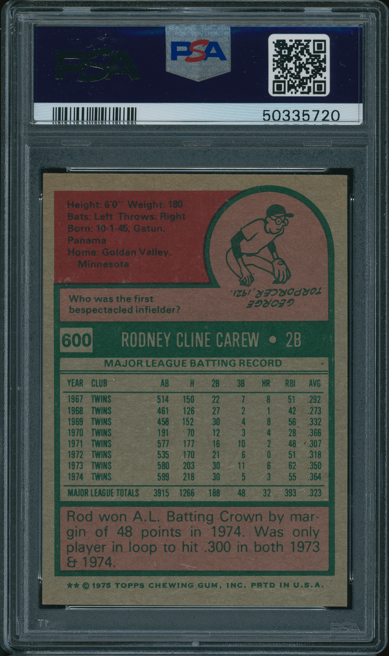 Home / Shop / Cards / Baseball / Twins / 1975 Topps # 600 Rod Carew PSA 8 NM-MT1975 Topps # 600 Rod Carew PSA 8 NM-MTRelated products Baseball , Cards 1986 Topps Tiffany #159 Orel Hershiser Dodgers PSA 9 MINT Baseball , Cards 1977 Topps #640 Carlton Fisk Red Sox PSA 9 MINT Baseball , Cards 1989 Bowman #211 Tino Martinez RC Yankees PSA 10 GEM MT Baseball , Cards 1980 Topps #600 Reggie Jackson Yankees PSA 9 MINT