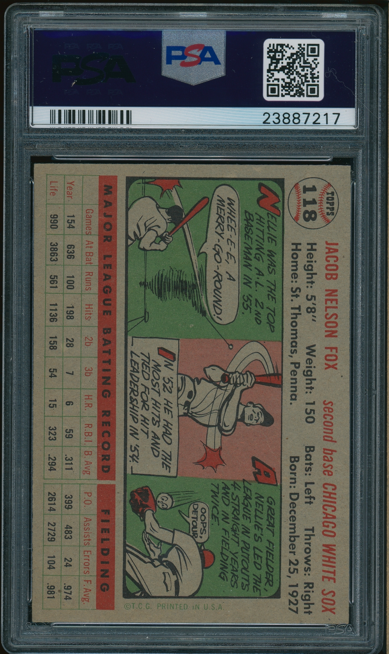 Home / Shop / Cards / Baseball / White Sox / 1956 Topps #118 Nellie Fox Grey Back PSA 7+ NM1956 Topps #118 Nellie Fox Grey Back PSA 7+ NMRelated products Baseball , Cards 1973 Topps #627 Luis Alvarado White Sox PSA 8++ Centered Baseball , Cards 1984 Topps Traded #42T Dwight Gooden RC Rookie PSA 10 GEM MT Baseball , Cards 1958 Topps #370 Yogi Berra Yankees PSA 8++ Centered Baseball , Cards 1977 Topps #10 Reggie Jackson Yankees PSA 9 MINT