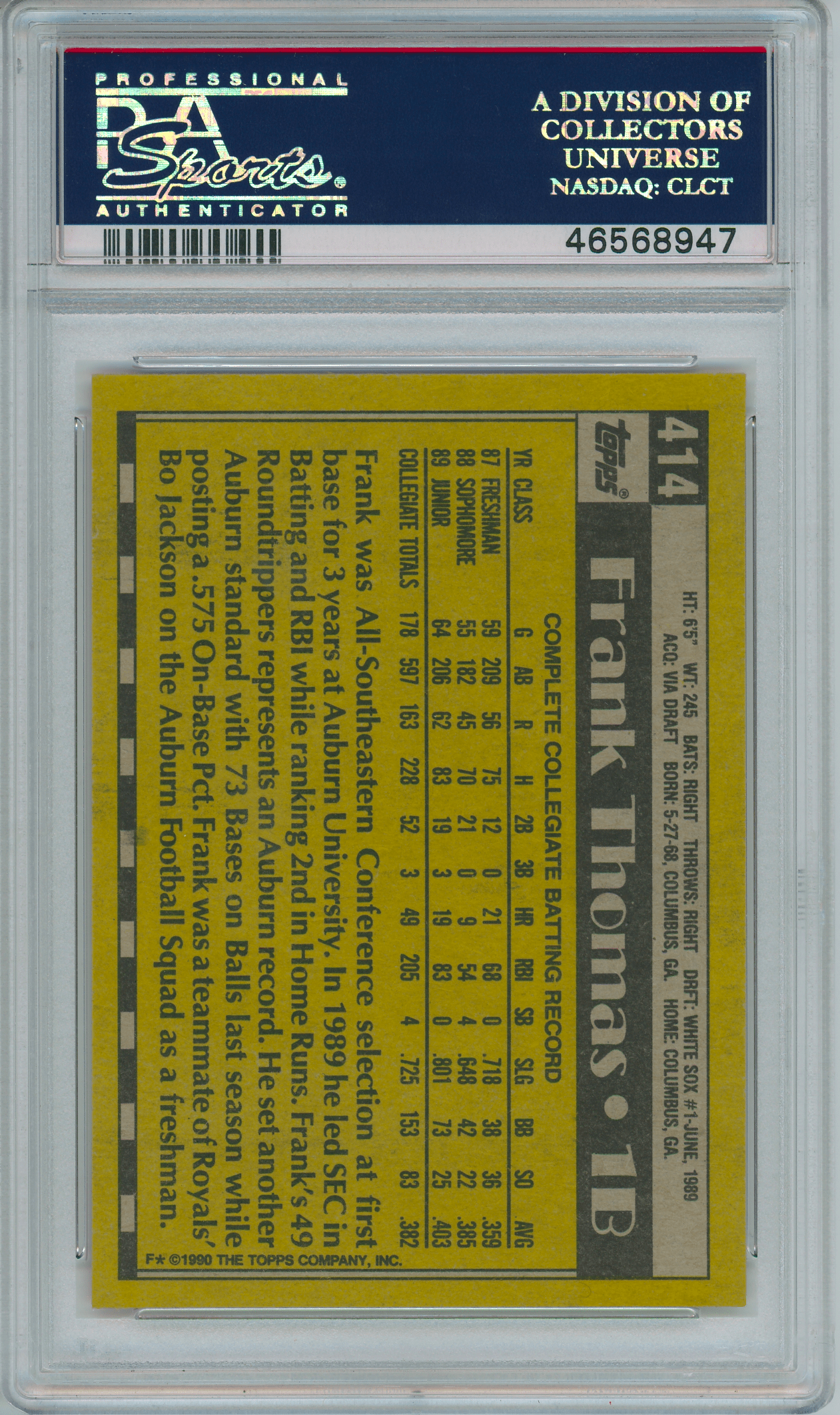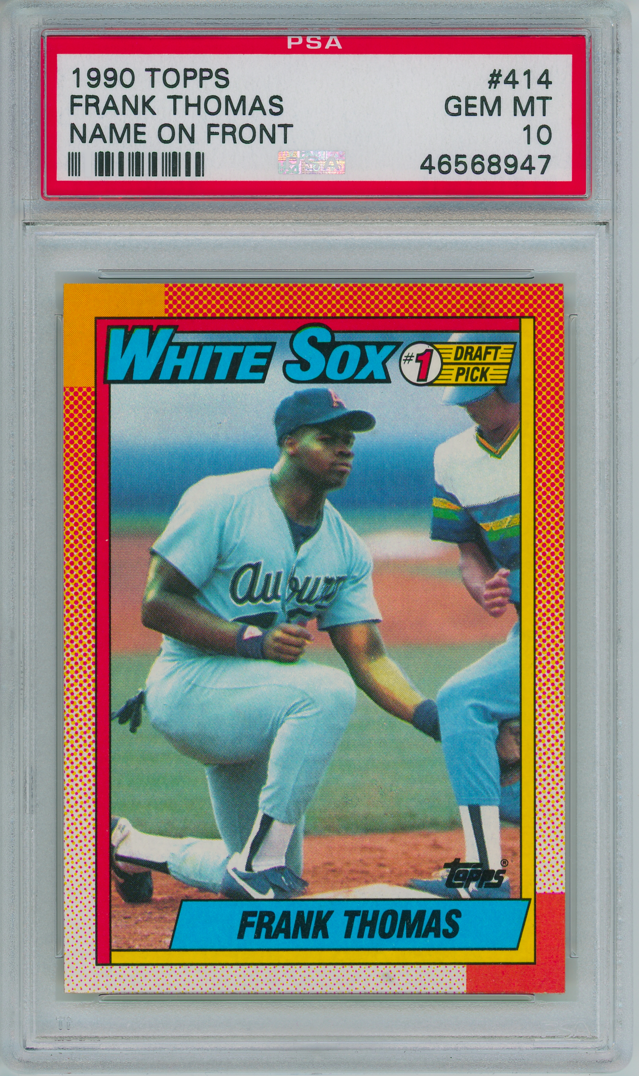 Home / Shop / Cards / Baseball / White Sox / 1990 Topps #414 Frank Thomas RC Rookie PSA 10 GEM MINT1990 Topps #414 Frank Thomas RC Rookie PSA 10 GEM MINTRelated products Baseball , Cards 1983 Topps #580 Tom Seaver Reds PSA 10 GEM MT Baseball , Cards 1983 Topps #163 Cal Ripken Jr. Orioles PSA 10 GEM MT Baseball , Cards 1977 Topps #10 Reggie Jackson Yankees PSA 9 MINT Baseball , Cards 1958 Topps #370 Yogi Berra Yankees PSA 8++ Centered