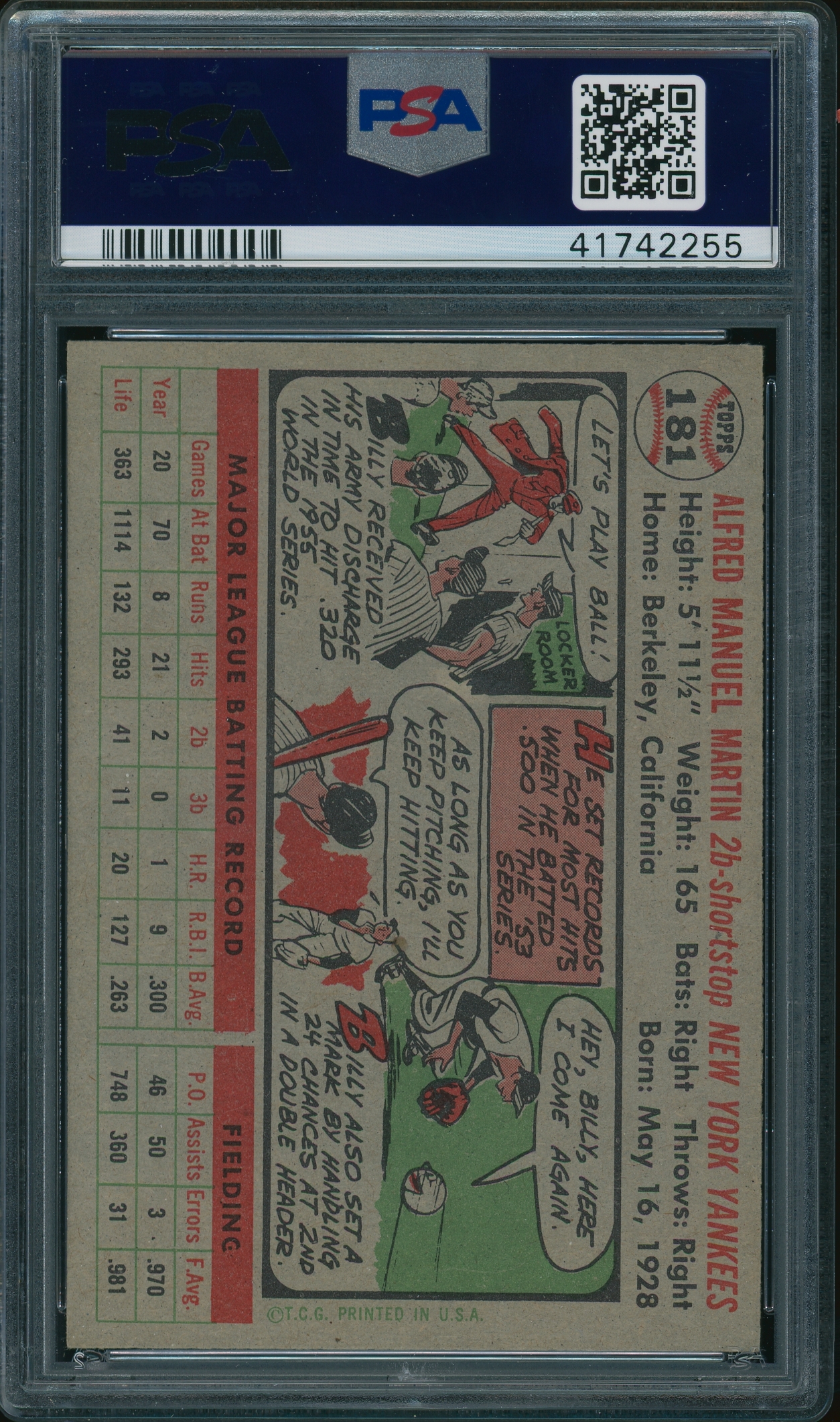 Home / Shop / Cards / Baseball / Yankees / 1956 Topps #181 Billy Martin PSA 7++ NEAR MINT1956 Topps #181 Billy Martin PSA 7++ NEAR MINTRelated products Baseball , Cards 1993 Bowman #511 Derek Jeter RC Yankees PSA 10 Gem MT Baseball , Cards 1989 Bowman #211 Tino Martinez RC Yankees PSA 10 GEM MT Baseball , Cards 1977 Topps #10 Reggie Jackson Yankees PSA 9 MINT Baseball , Cards 2019 Topps Living #259 Thurman Munson Yankees PSA 10 GEM MT