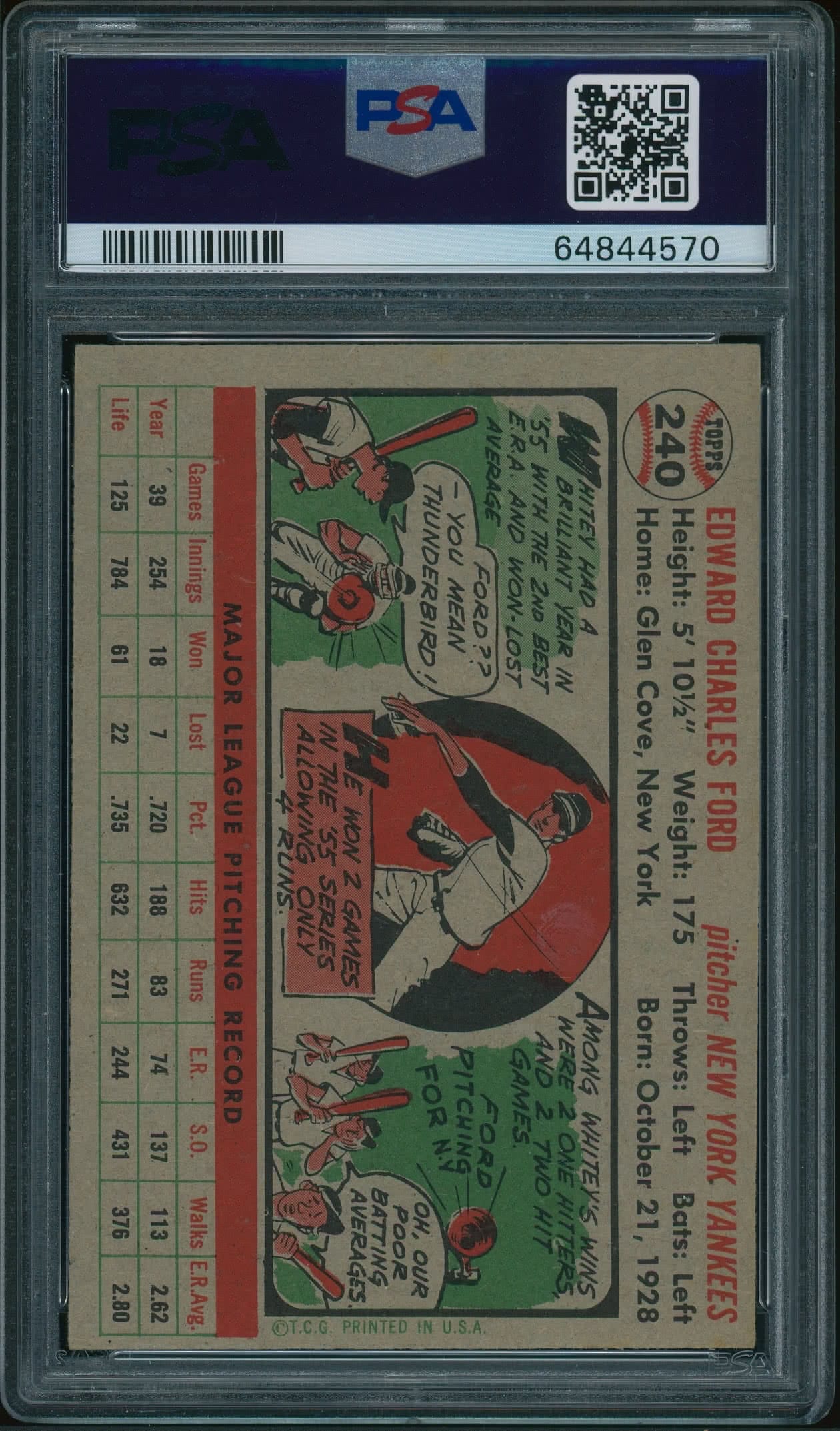1956 Topps #240 Whitey Ford PSA 7 NM++