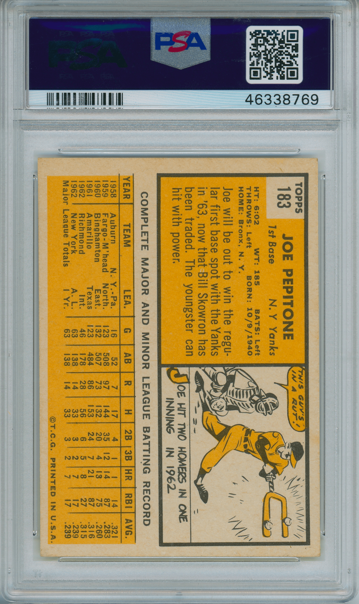 Home / Shop / Cards / Baseball / Yankees / 1963 Topps #183 Joe Pepitone PSA 8++ Centered1963 Topps #183 Joe Pepitone PSA 8++ CenteredRelated products Baseball , Cards 1958 Topps #370 Yogi Berra Yankees PSA 8++ Centered Baseball , Cards 1961 Topps #2 Roger Maris Yankees PSA 8++ Centered Baseball , Cards 1980 Topps #600 Reggie Jackson Yankees PSA 9 MINT Baseball , Cards 1990 Topps Tiffany #210 Ryne Sandberg Cubs PSA 10 GEM MT